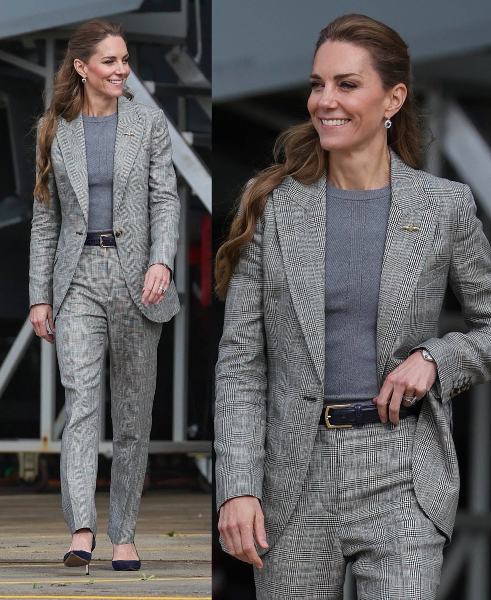 Много хубава и усмихната Кейт, този костюм май го носи скоро, карето на "Принца на Уелс", или е друг?