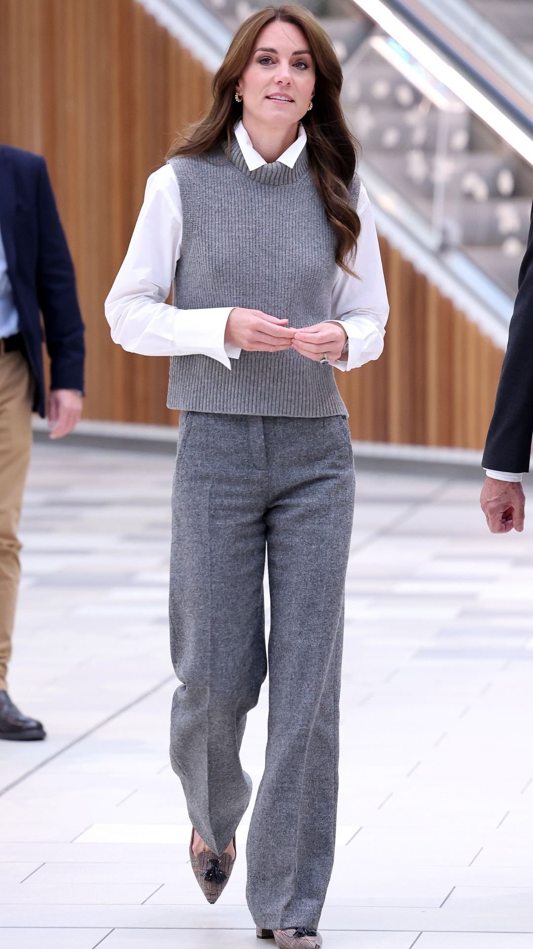 Катрин отново изумява как се слиза с финес по стъпала с токчета.