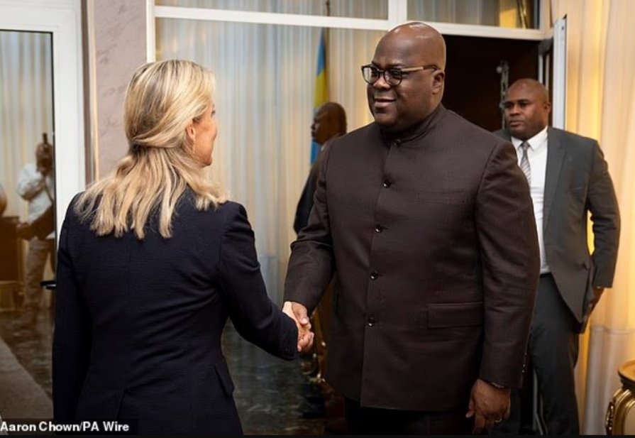 Херцогинята на Единбург се срещна с президента на Демократична република Конго Феликс Чисекеди в кабинета на президента в Киншаса.