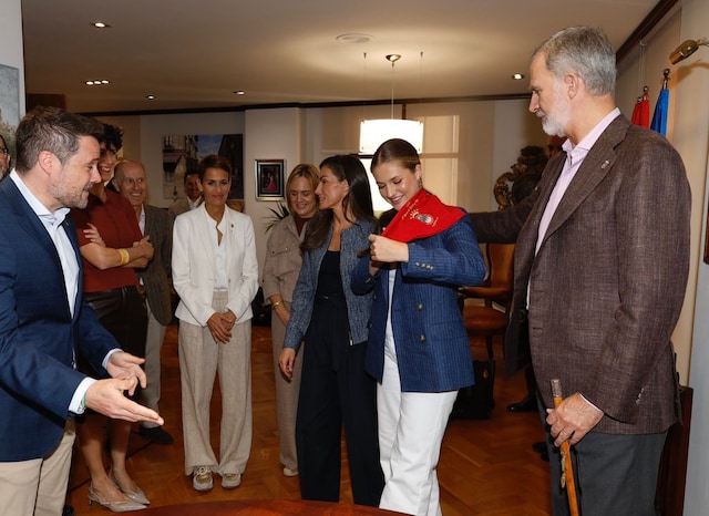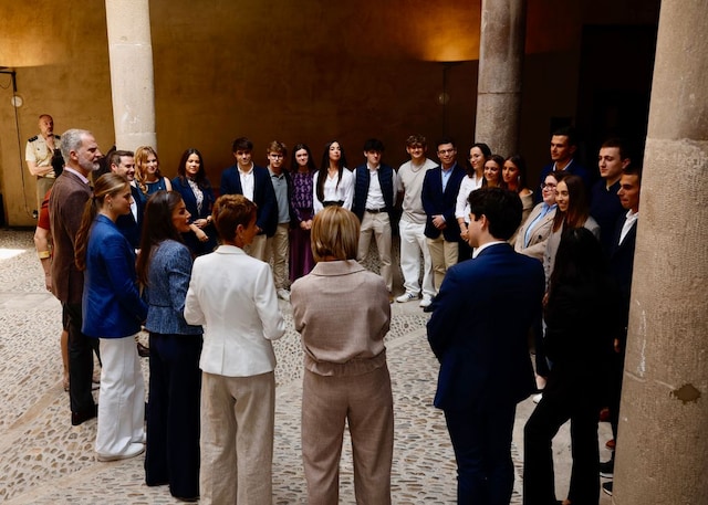 И снимки от миналата събота на Фелипе, Летисия и Леонор от посещението им на двореца в Олите и Тудела. Срещнали са се с младежи, представители на различни младежки групи от Навара, свързани с университета, изкуствата, професионалното обучение, музиката, научните изследвания и селското стопанство, сред тях е имало носители на наградите „Принцеса на Жирона“. Имали са среща и с бизнесмени от Търговска камара на Навара. В Тудела са посетили Двореца на маркиз Сан Адриан, където днес се посещават аулите на Националния университет за дистанционно обучение (UNED), а в кметството на Тудела Леонор е получила традиционна наварска червена кърпа.