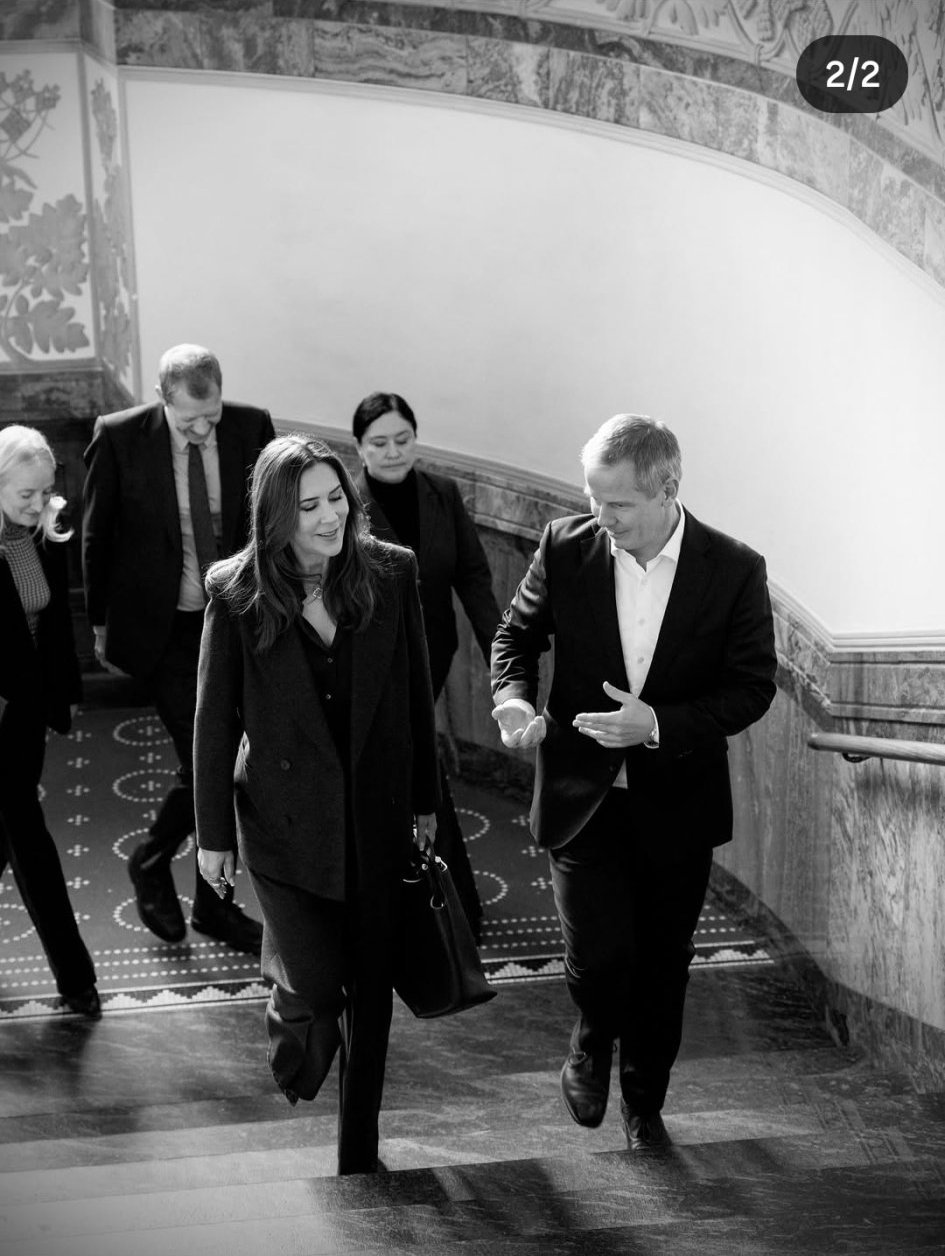 Мери като част от консултативния съвет на център за изследвания "Кралица Мери" към университета в Копенхаген присъства на заседание в кметството в Копенхаген.