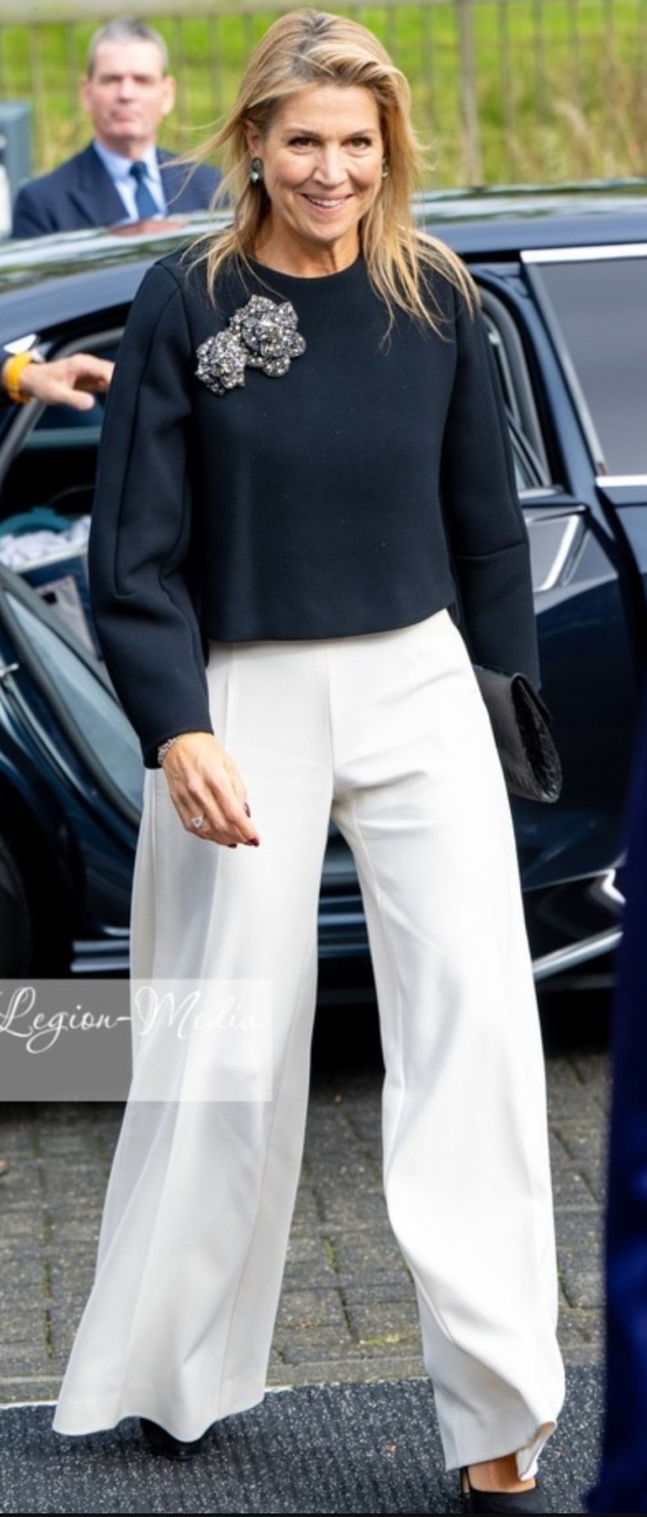 Ох и този костюм е ужасен и безформен, и пак черно. От вчера роклята на Раджва, от ангажимента с Йожени, беше малко по- цеетна, но нямаше много снимки, за да я видя в детайли.
