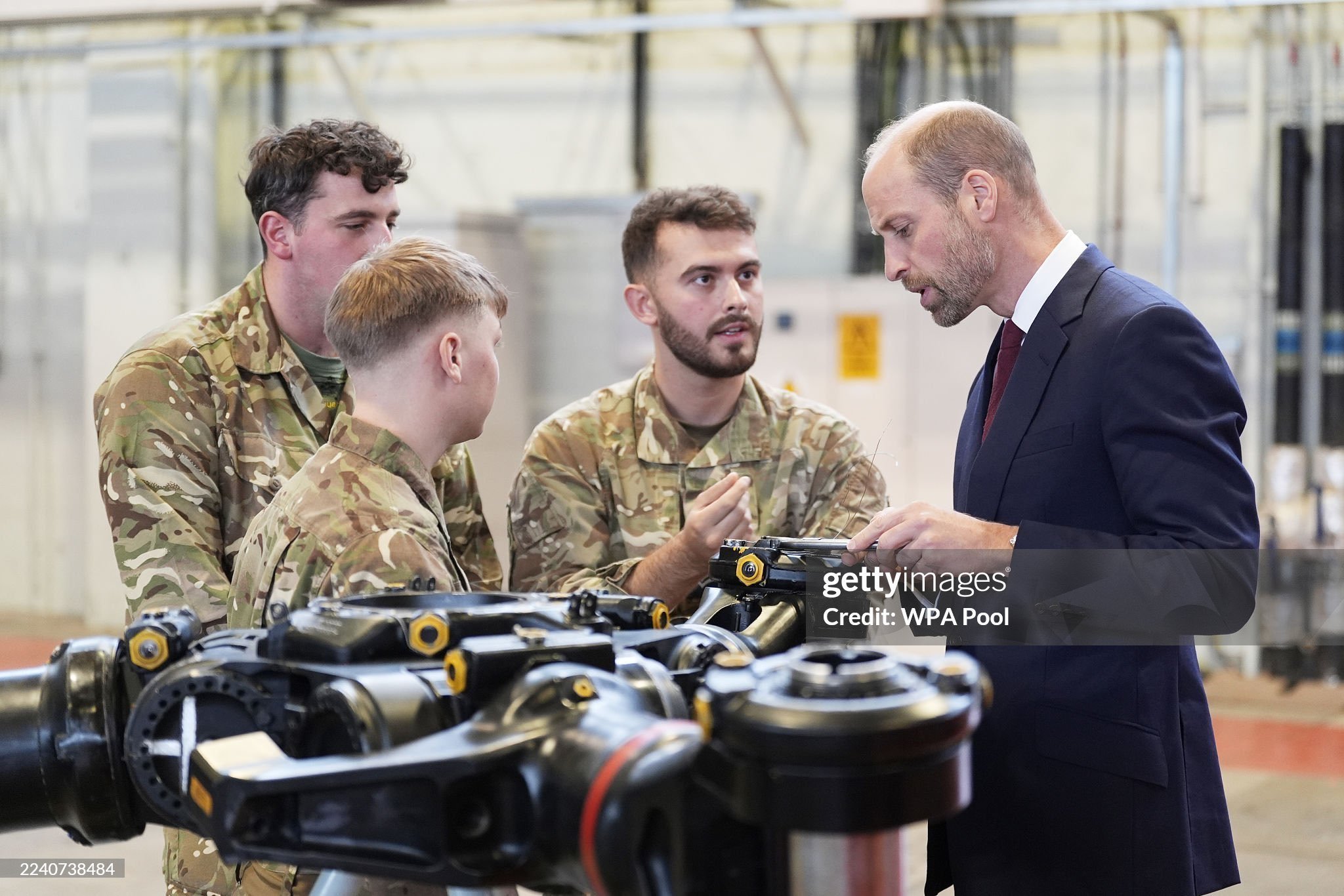 Уилям и Хюсеин помагат да се работи върху главна глава на ротора от хеликоптер на Chinook.
