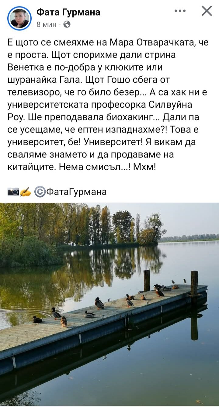 Ще очакваме сега пост, с който Златка публично ще обясни как тя не е замесена и не е знаела за дейността му.