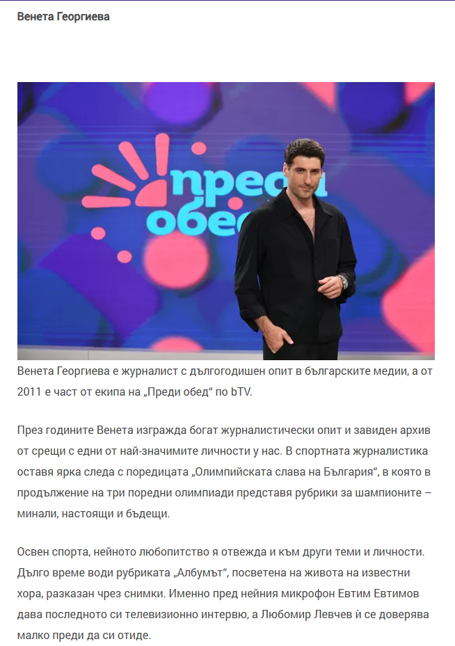 Eкипът е актуализиран своевременно. Толкова са бързали, че под името на Венета Георгиева са сложили снимка на Петър.