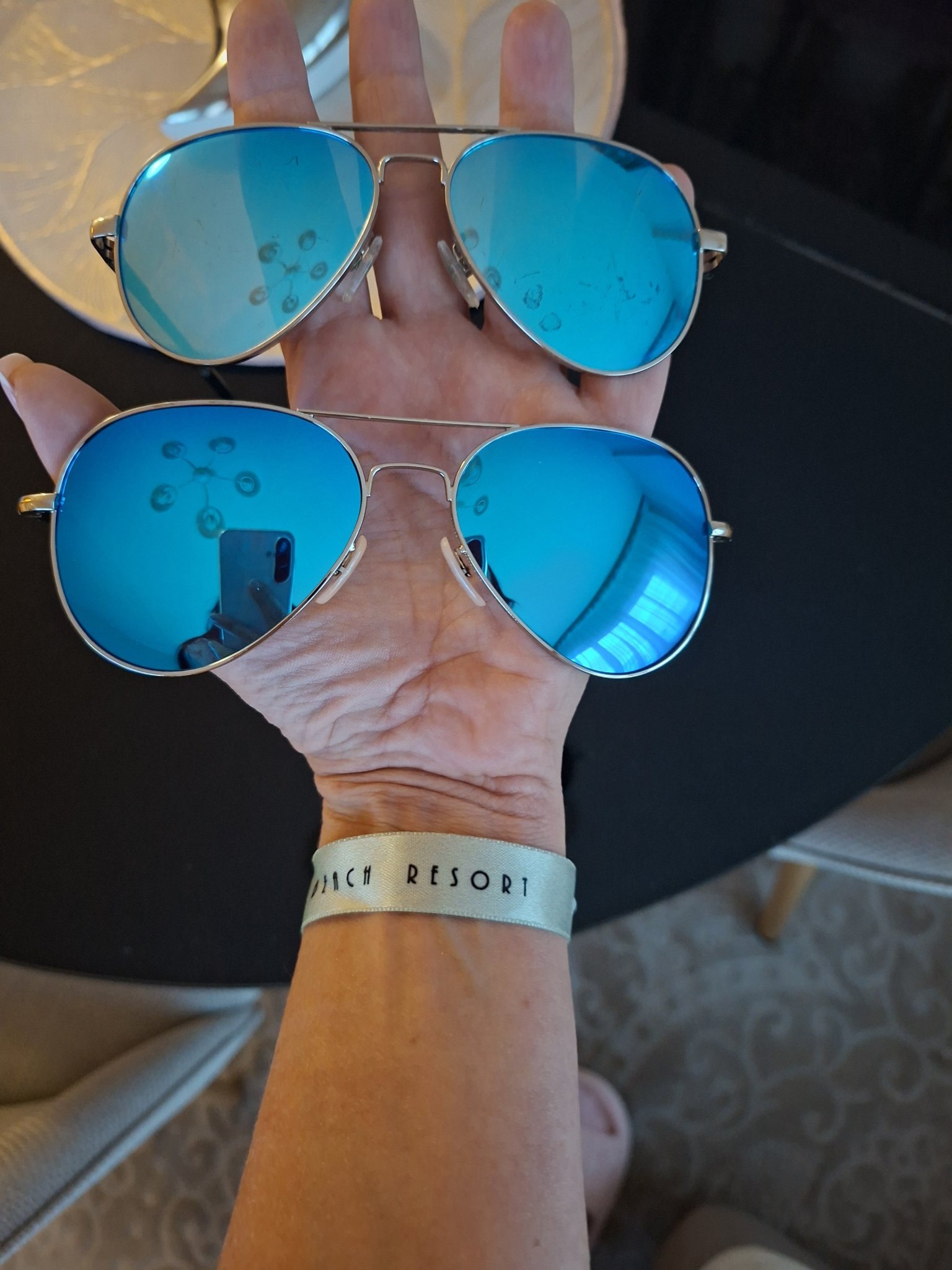 Два чифта очила. Реших да ги взема защото моите любими очила ги надрасках на морето. Уви, много са големи за моето лице, още повече, плаките са с различен нюанс на вътрешната част. Моите са на кафява и много комфортна основа за окото, а тези отвътре са черно-зеленикави. Ще пътуват. 😞