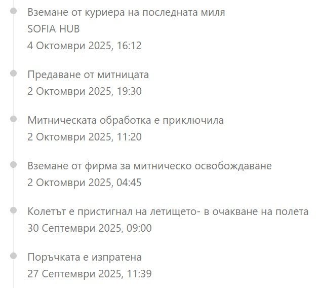 При мене на 17.09.25 пратката е била в статус като твоя и на 2.10.25 ми я доставиха. Кога е крайният срок за получаване?