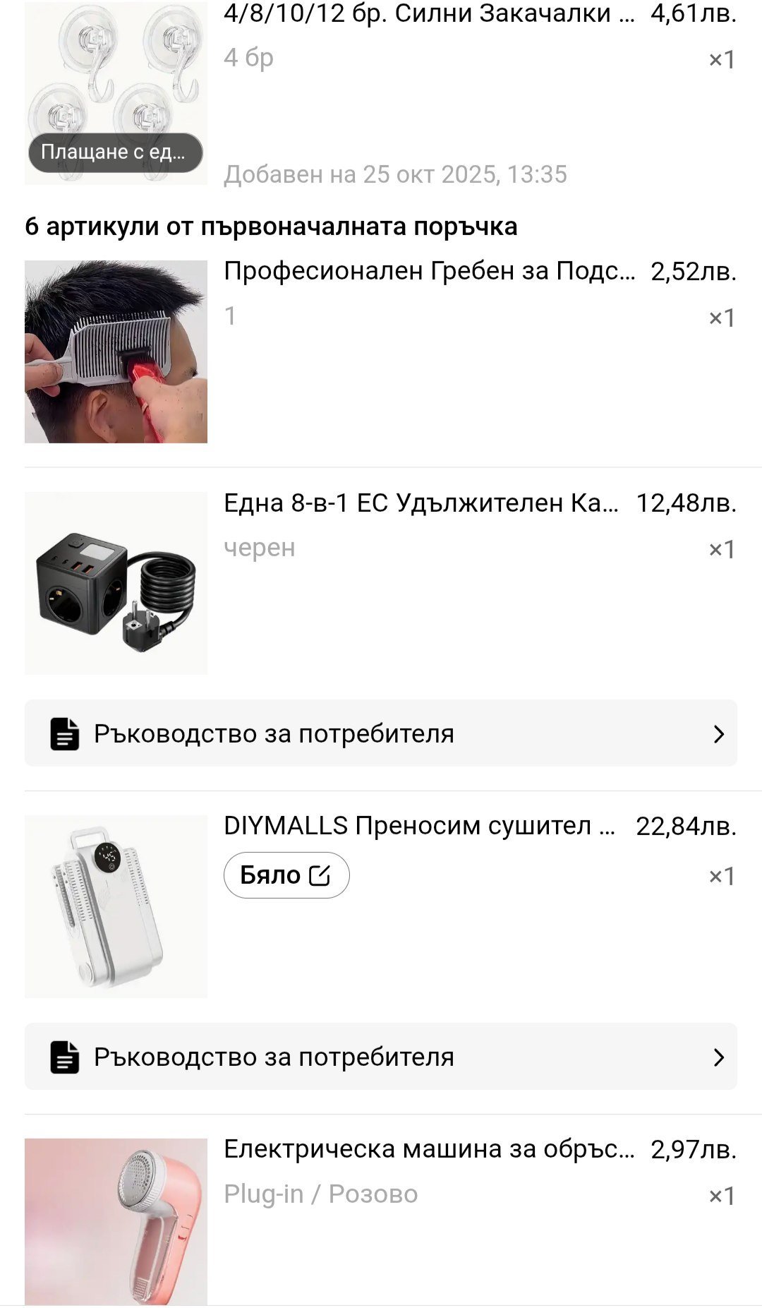 Ох, напоръчвах разни неща...отново. Голяма зарибявка, ама се бях наканила на  сушилник за обувки. Нали идва сезона на мокрото време. И към него едно-друго. Като поръчвах сушилника и другите неща покрай него и ми даде 2 пъти карта за отстъпка! Преди малко пак направих поръчка -заради майка ни - за нея са нокторезачка за дебели нокти и магнитна завеса за врата. Поръчах и шапка и пелерина за подстригване - за купони и после поръчката със завесата беше с 10 лв купон та турих и един сутиен да стигна безплатна доставка. Странно,че поръчката на 2-те неща е за 8 и нещо лв.,но не ми начисли доставка.  Ето какво поръчах, дано са читави нещата (сушилника и разклонителя са с карта за отстъпка)
