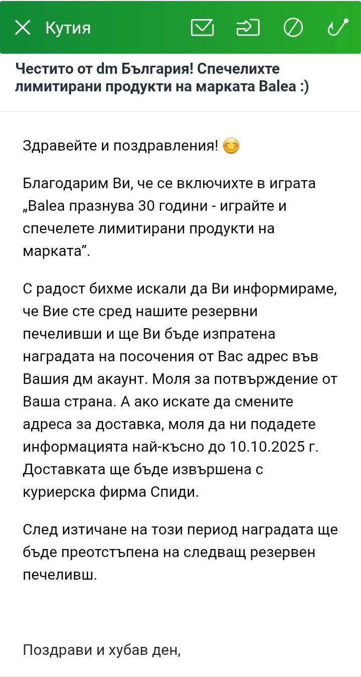 Първа награда за месецааааа (и втора награда като резерва)! Да са живи и здрави пропусналите си късмета!