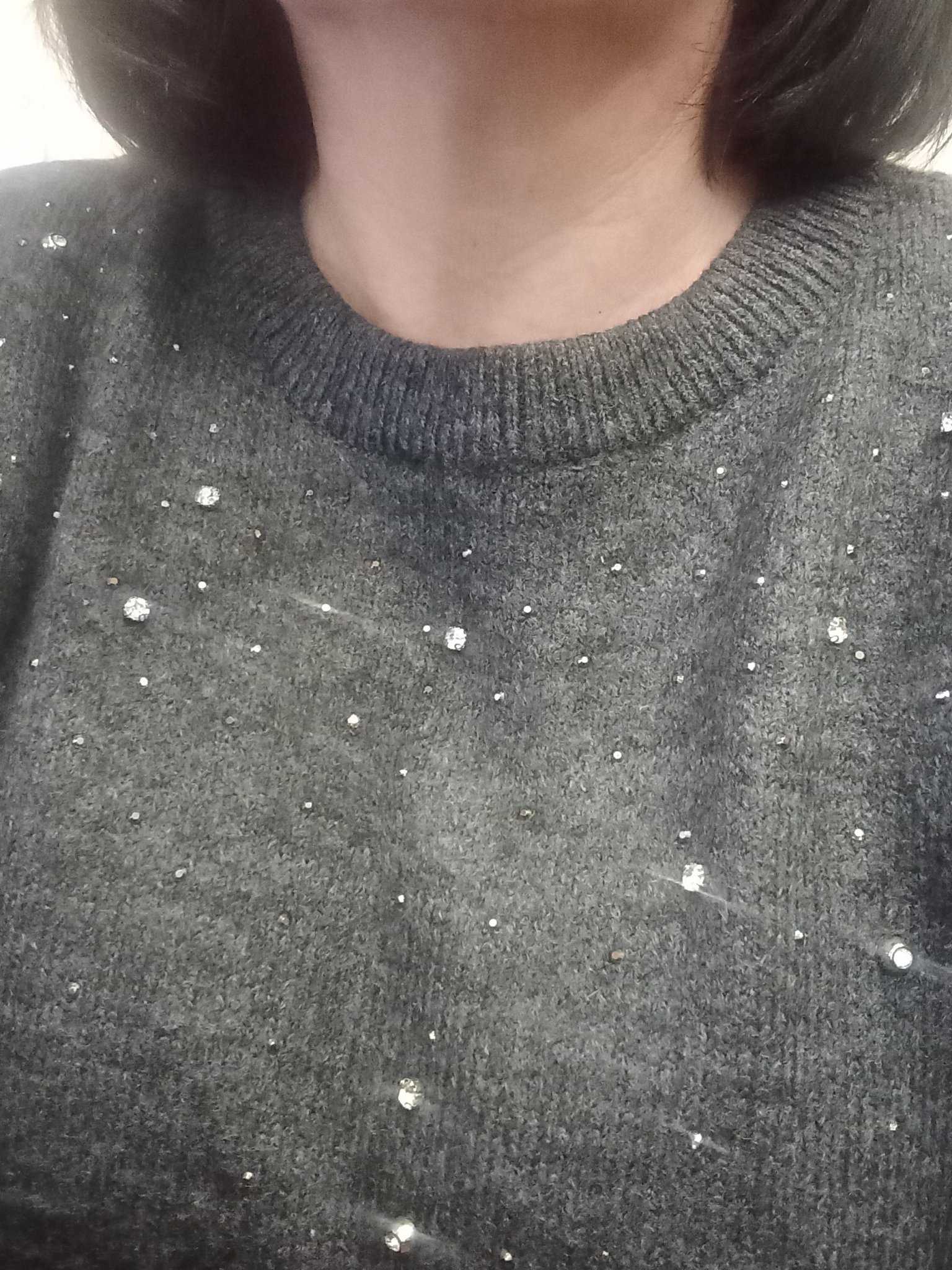 Аз имам сив пуловер с перлички, една моя комбинация с него -  монохром сиво/сребристо - пускам за малко: