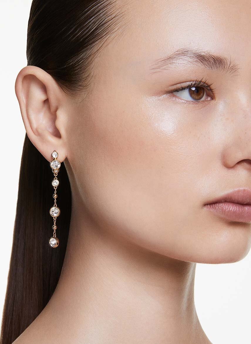 Тази рокля аз въобще не си я представям с виждащи се обеци....тя е толкова блестяща, че и обеци ще ми стане много. Нещо съвсем тънко, нежно, да не кажа мъничко на самото ухо. Или евентуално първия вариант на Света!