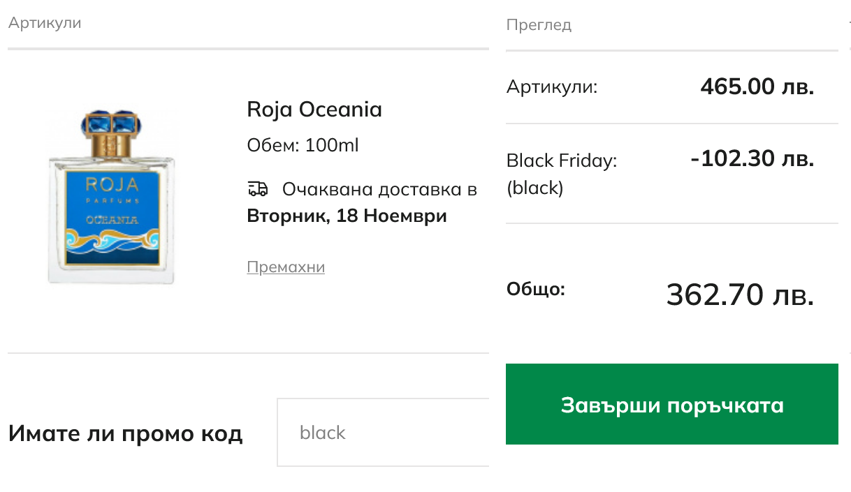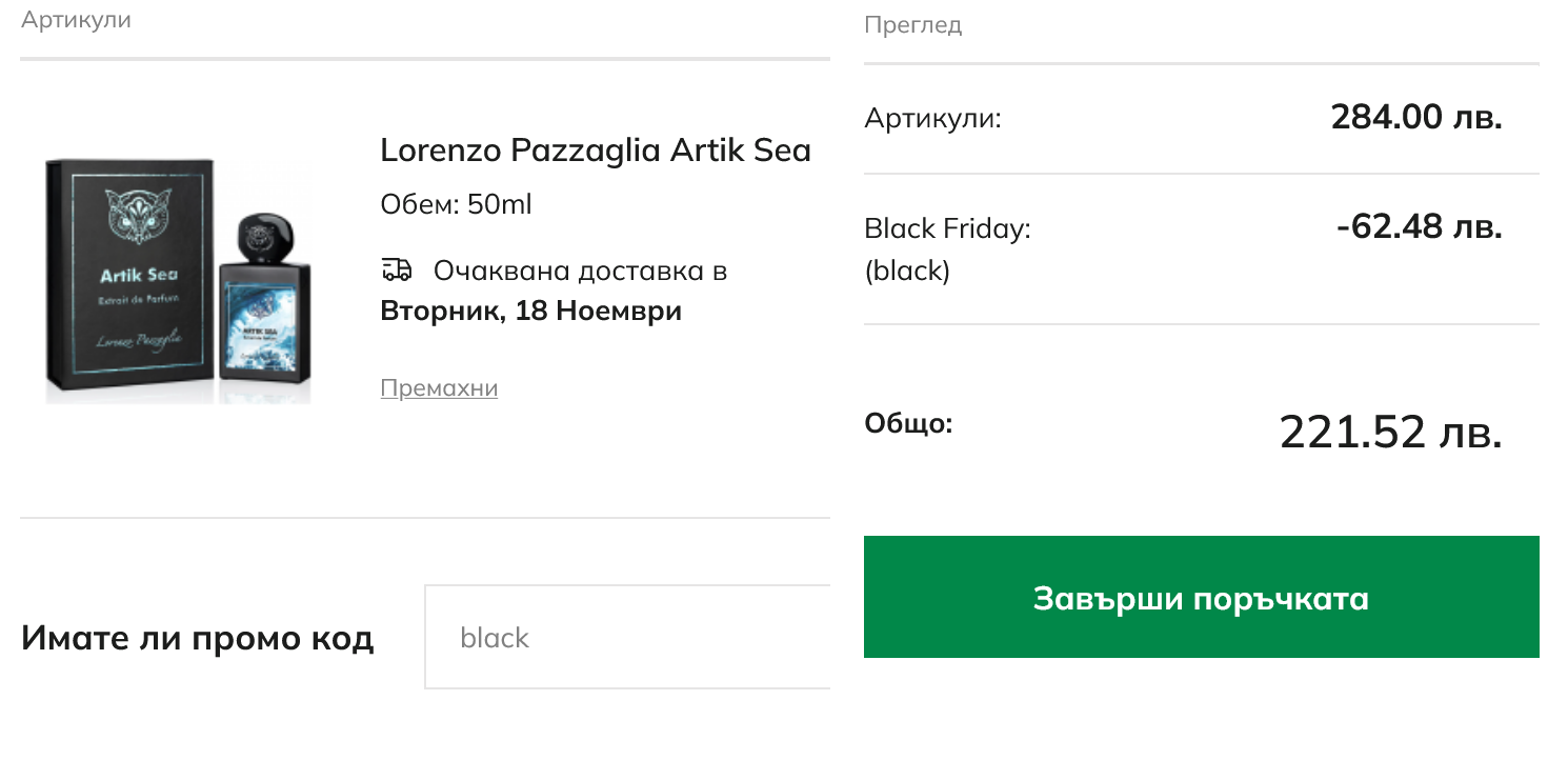 А цените в Елинор са като вчера. В премиум секцията постоянно има намаления когато поставиш продукт в кошницата. Вчера работеха кодовете за 20% Пробвах и black, работеше и той. Малко постно ми се вижда в сравнение с предходните 2 години