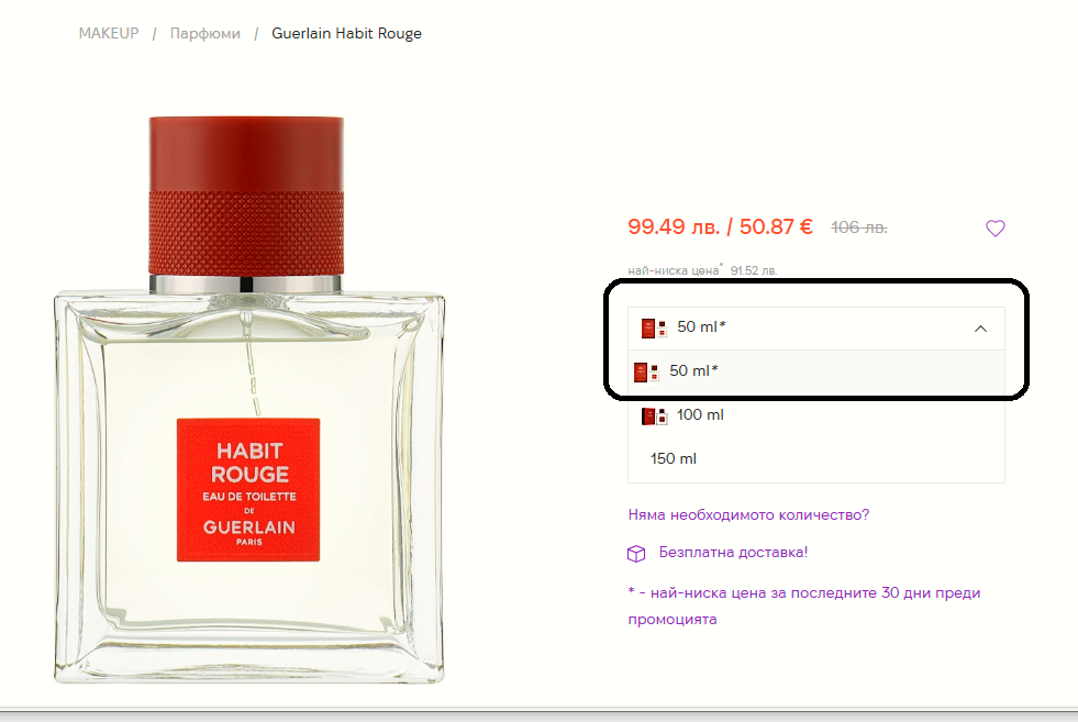 Цената на 40 мл преди да отиде в кошницата е 41.95 и там вече става 39.01, а цената на 60 мл която е без * си остава 41.54
