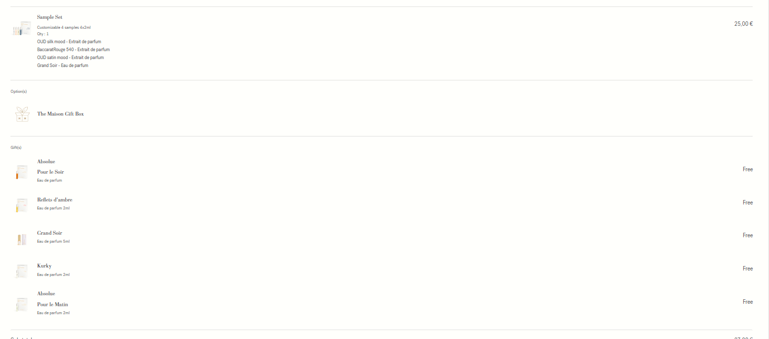 В началото ми даваше да завърша поръчката само със сета от 4 мостри + 5мл минито.