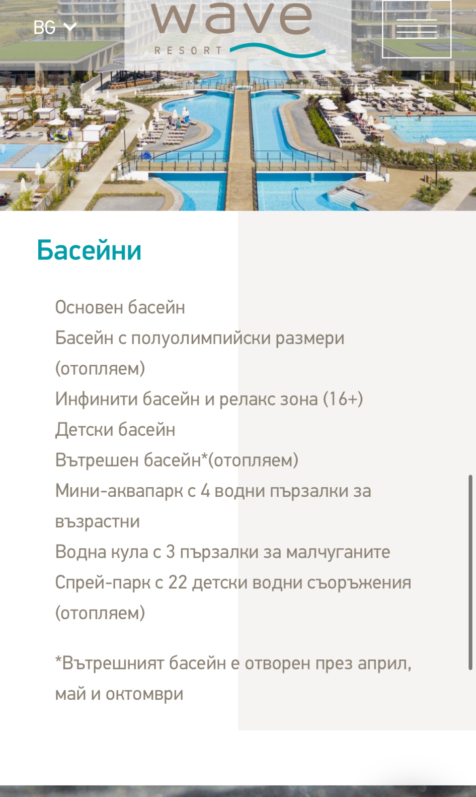 Обмисляме почивка в края на юни или началото на юли,с малко детенце сме ( 2г. и  половина ще бъде тогава).Доколкото разбрах,вътрешният басейн на Wave не работи през лятото,а това е доста разочароващо,защото гостите няма откъде да знаят какво ще бъде времето(освен ако не си вече в хотела и не гледаш актуалната прогноза).Предполагам с последното изречение сама си отговорих на въпроса,но хайде,потвърдете и вие xD
