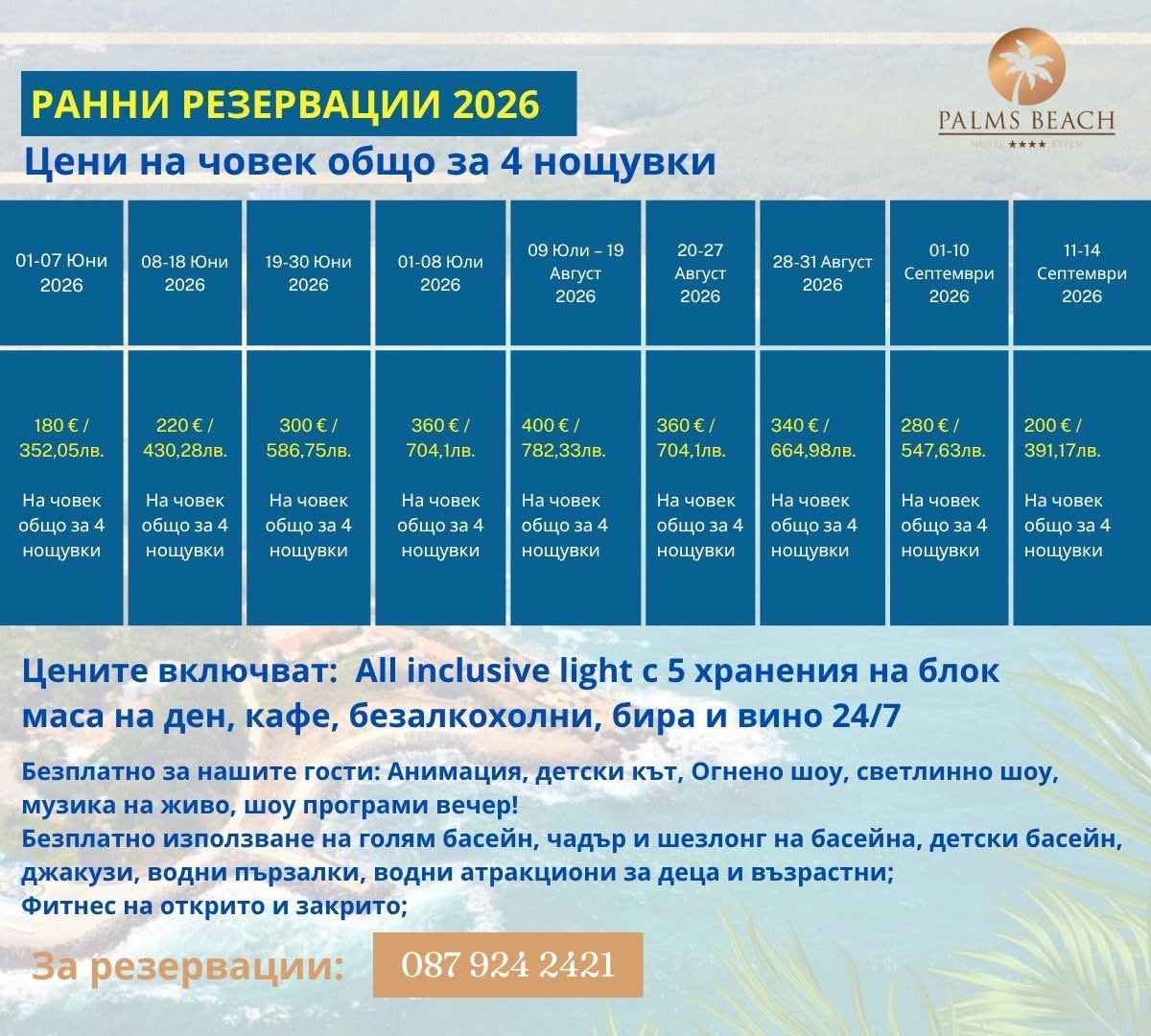 С тези цени, които виждам за ранни записвания май по скоро ще  се преориентирам към друг тип почивка , но все пак следя темата с интерес.