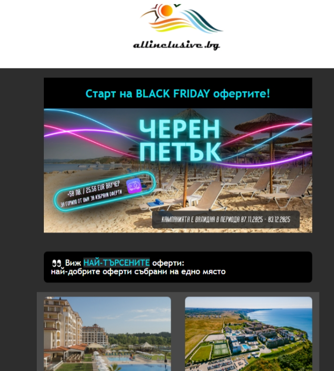 Пускам линк към офертите на Холидей Планет за ЧП. Искат 100 % плащане, но поне имат безплатни анулации. https://www.holidayplanet.bg/promo-more-bulgariya/black-friday-p … za-lyato-2026-183
