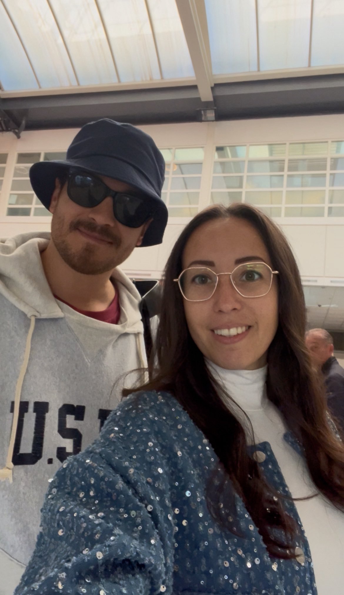 Деметка Sunglasses се е обозначила от летището. Airplane Дали и нашичкият ще пусне нещо ... поне фото с елегантният костюм да сподели в ИГ или пейзаж .