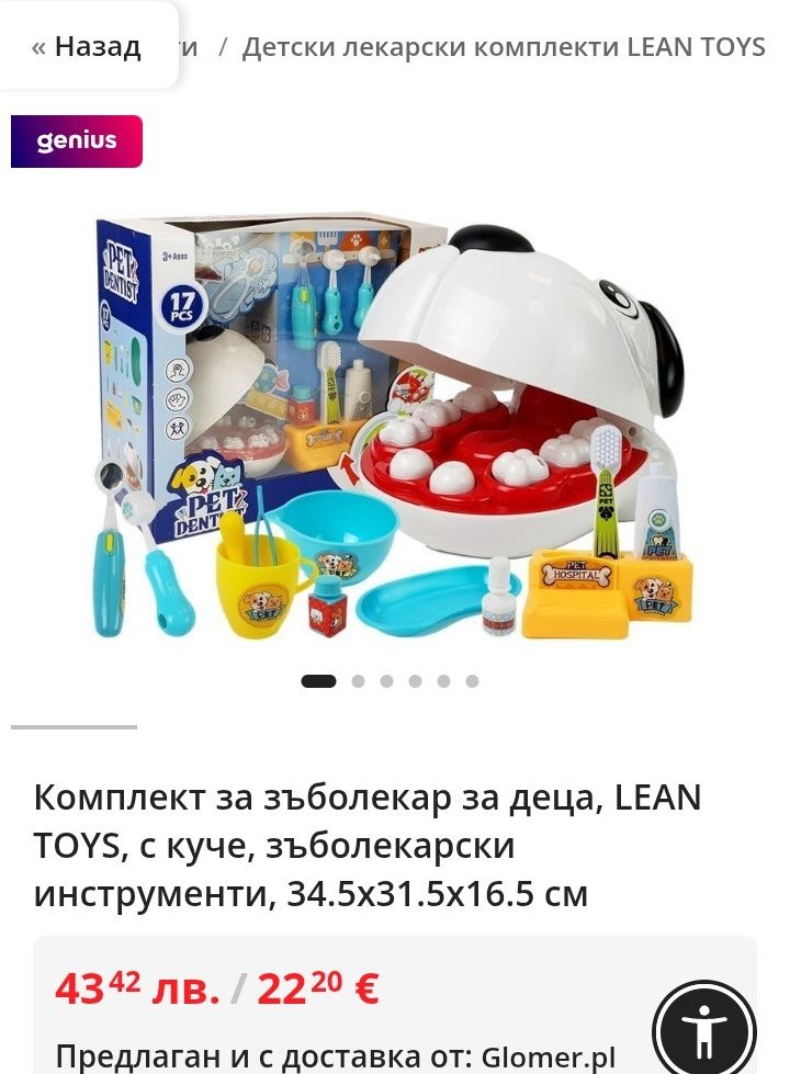 Моя син имаше това куче ,всички зъби му се вадят,отделно някои имаха дупки и със инструментите му ги правеше ,има и паста и четка да ги мие ..