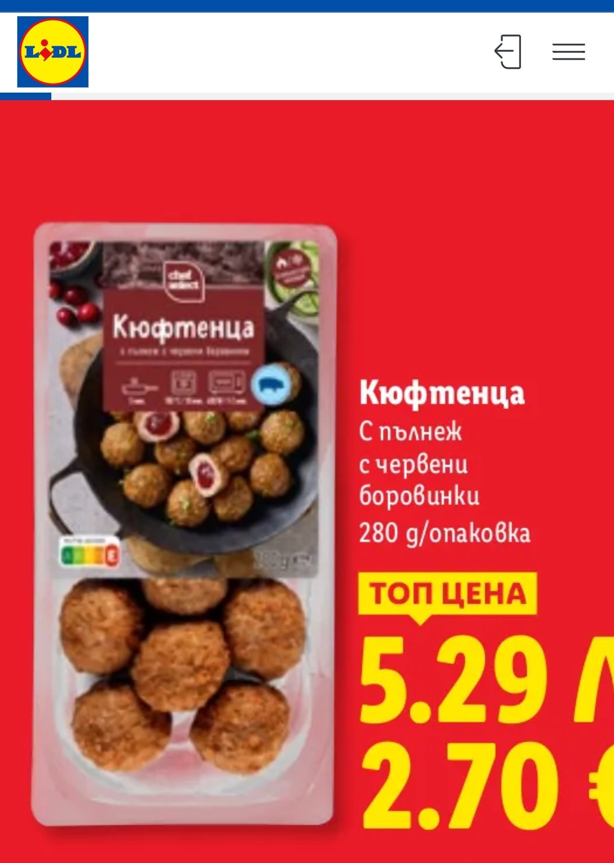 Не съм се заглеждала в цената и грамажа, ММ ги харесва и затова купувам. То има и други видове кюфтенца като грамаж, без пълнеж, взимала съм, но не ми харесват на вкус. Имаше едни, не помня от коя седмица, една идея по-големи от посочените, със зеленчуци - много са вкусни, може би най-интересен вкус в сравнение с малките.