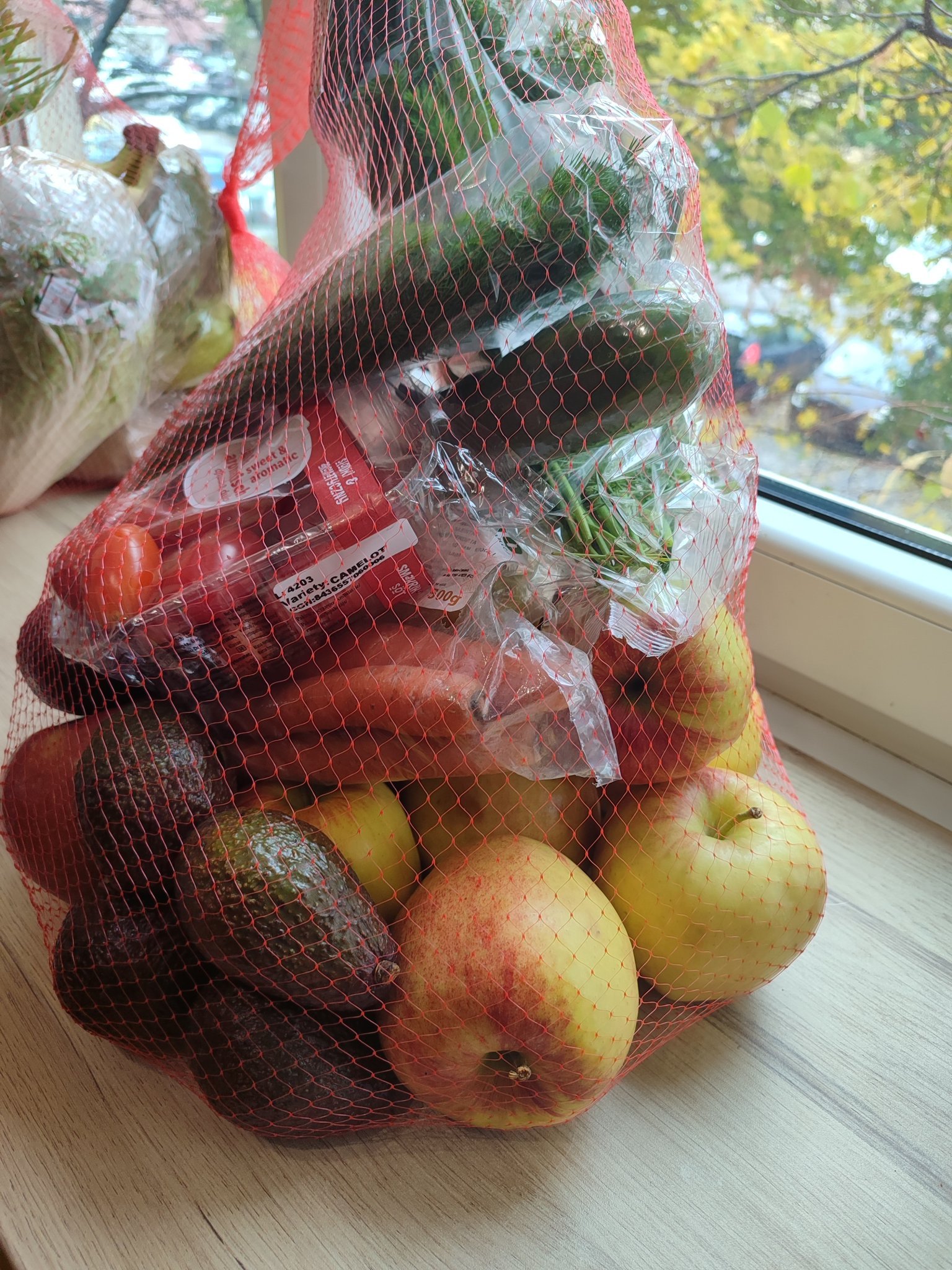 Днес взех две щайги с плодове и зеленчуци за 5 лв. (за протокола София,  Люлин 2). При влизане в магазина нямаше, но 10 мин по-късно отивайки към касите вече бяха извадили 5-6 броя. И двата, които аз купих са по около 6 кг. Има ябълки, авокадо, манго, тиквички, био моркови и краставица, банани, 5 връзки копър, китайско зеле, чери домати и магданоз.
