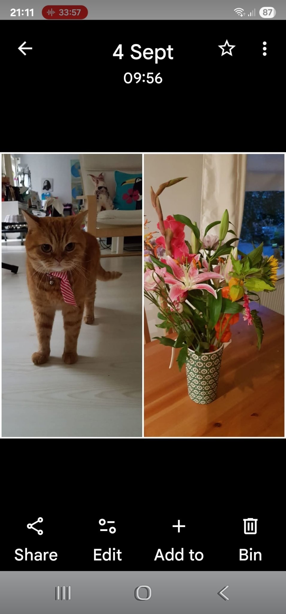 Сетих се, че имам снимка на Фин и цветята, които не бяха смачкани.