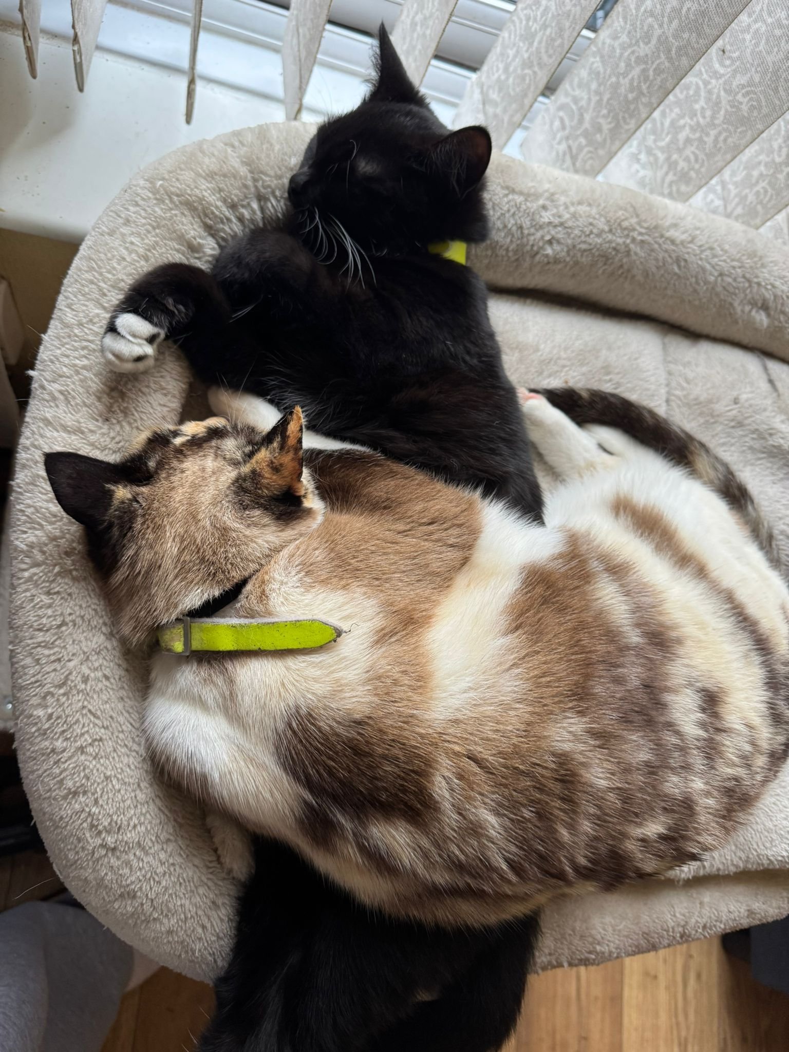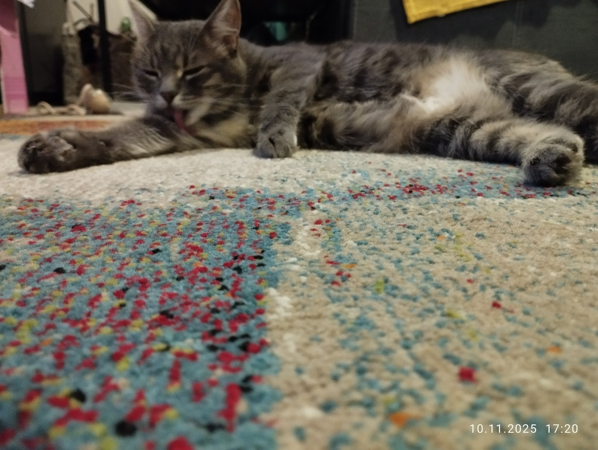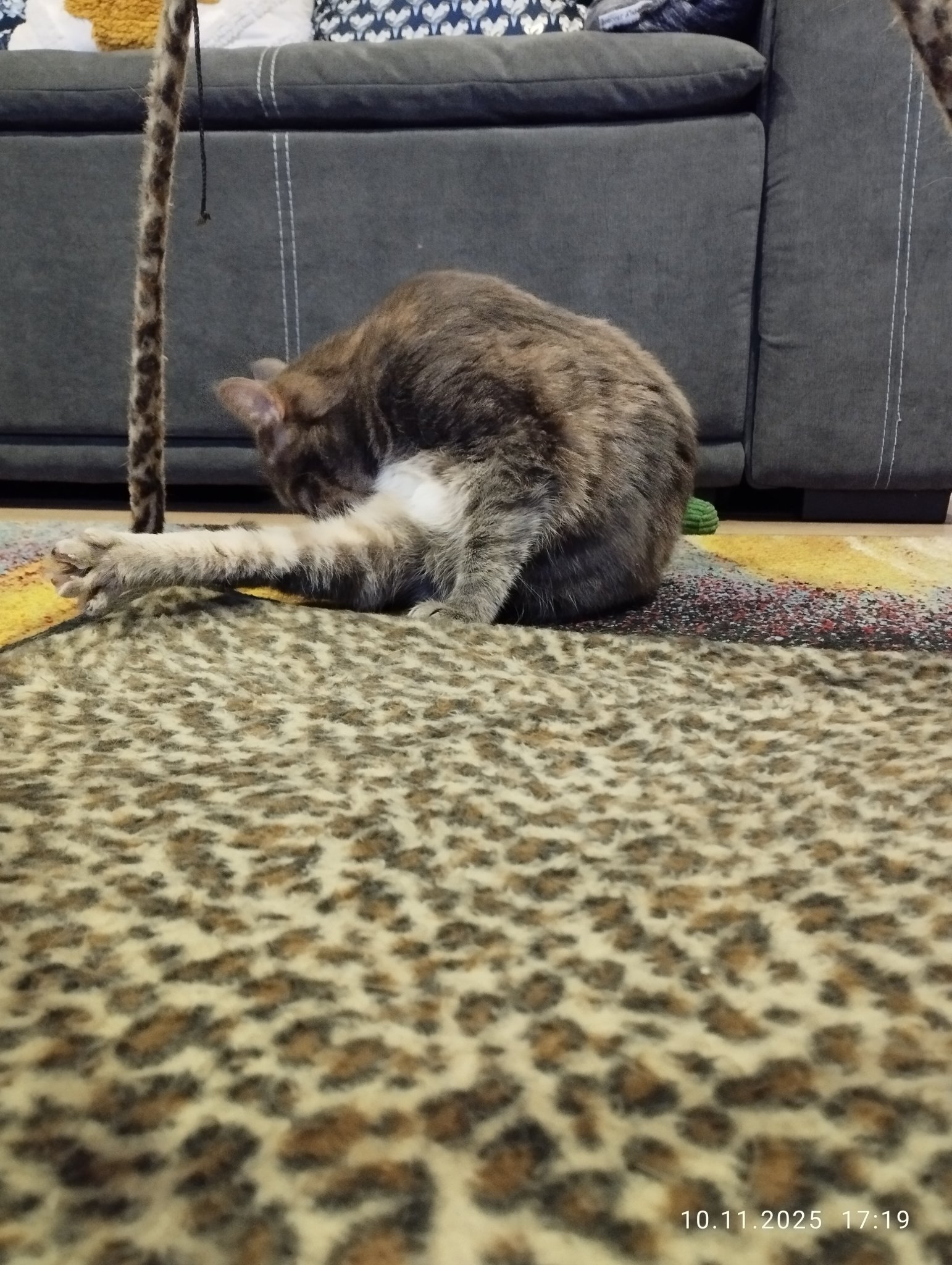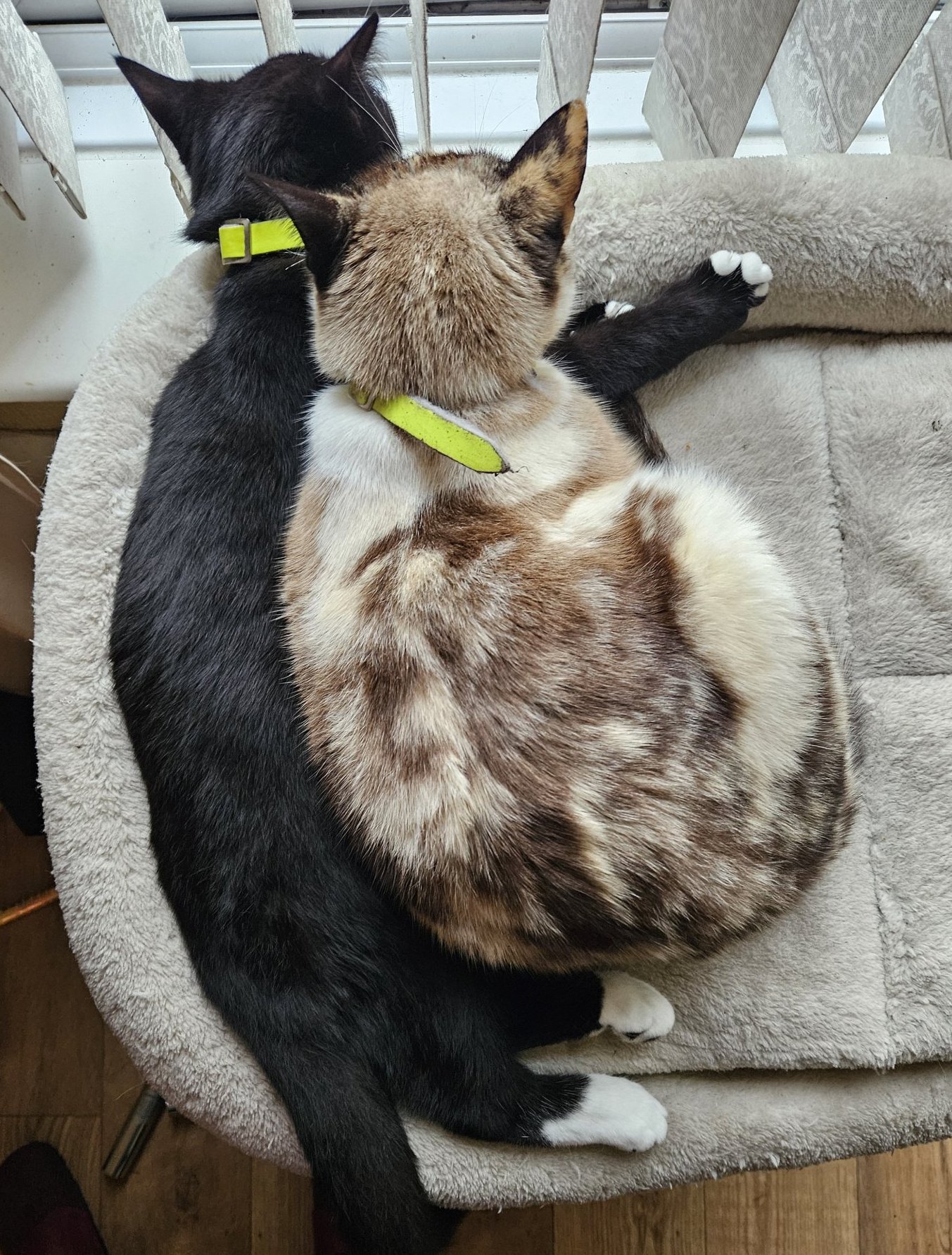Мара е вече на 6 месеца и скоро ще достигне пълен размер. Минка пък е с наистина красив кожух, който се разделя на две различно нашарени половини точно по средата. В някой смисъл е като котка-химера, но само по главата отгоре, ушите и тялото, в лицето не си личат две половини.