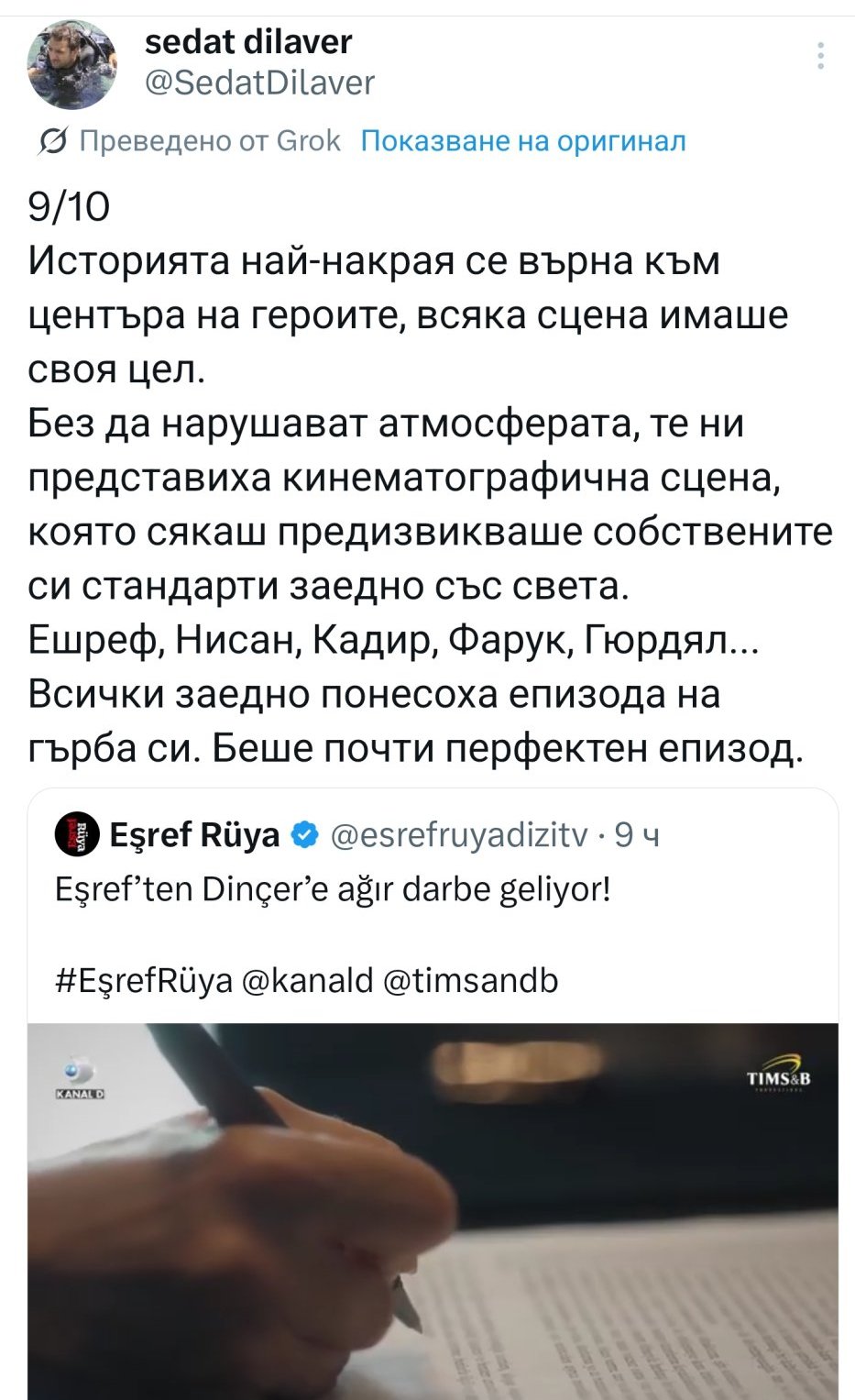 А иначе, тази седмица Eşref Rüya почти е  успял да задоволи вкусовете на господин Седат. Wink