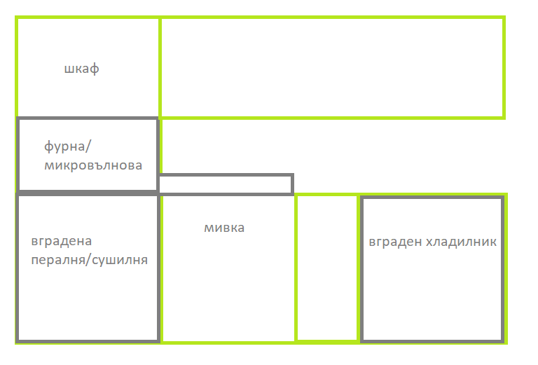 Даже и котлонът е подвижен, за всеки случай. Единствено в печката набързо искам да мога да подгрявам неща и взех комбинираната фурна+микровълнова на Икеа.