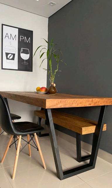 Аз само да кажа за пейката, че тя се слага обикновено на стена - защото е неподвижна. За маса в центъра на стаята не мисля че ще стои добре с пейка.