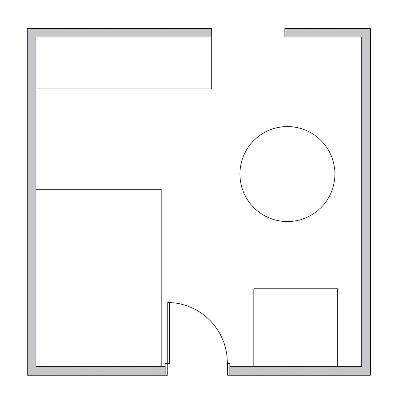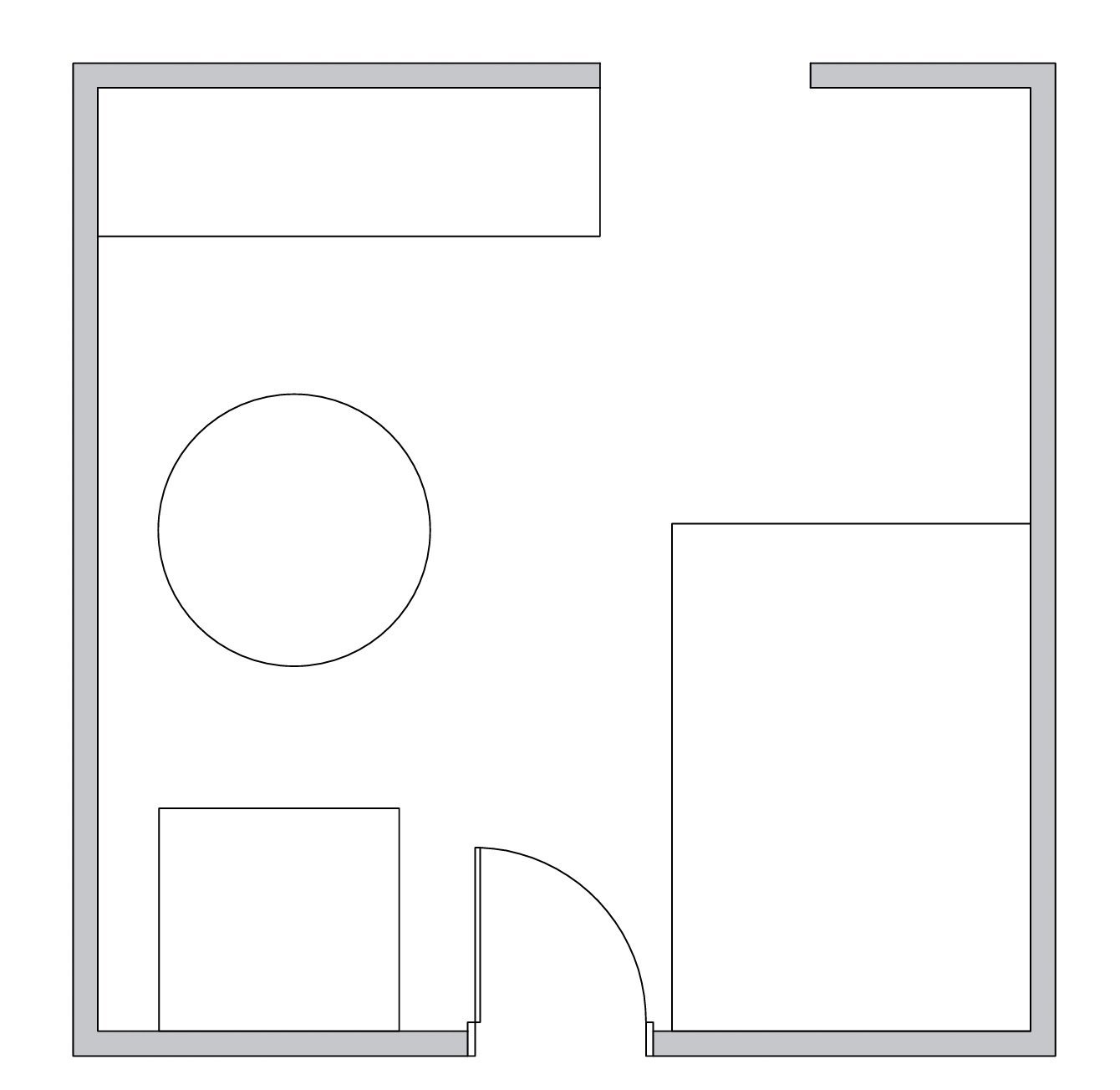 И аз първо бях нарисувала маса със столове в стаята, но после се замислих за следното:
