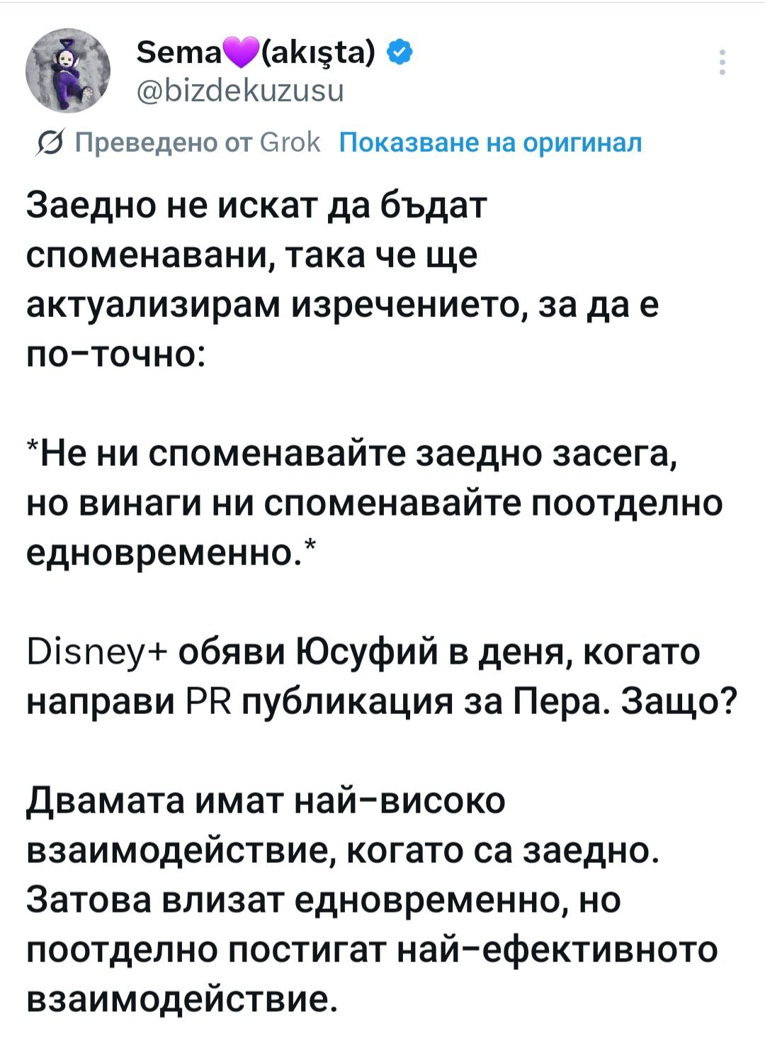 В Х ги спукват от подигравки и възмущение след написаното от Бирса. 🤐 Да вземат от OGM да проумеят, че рейтинг и взаимодействие могат да се постигнат и без подобни циркове. Пример са Градът и Ешреф, където никой не споменава личният живот на актьорите и поддържат висок рейтинг със сценария и играта на актьорите.