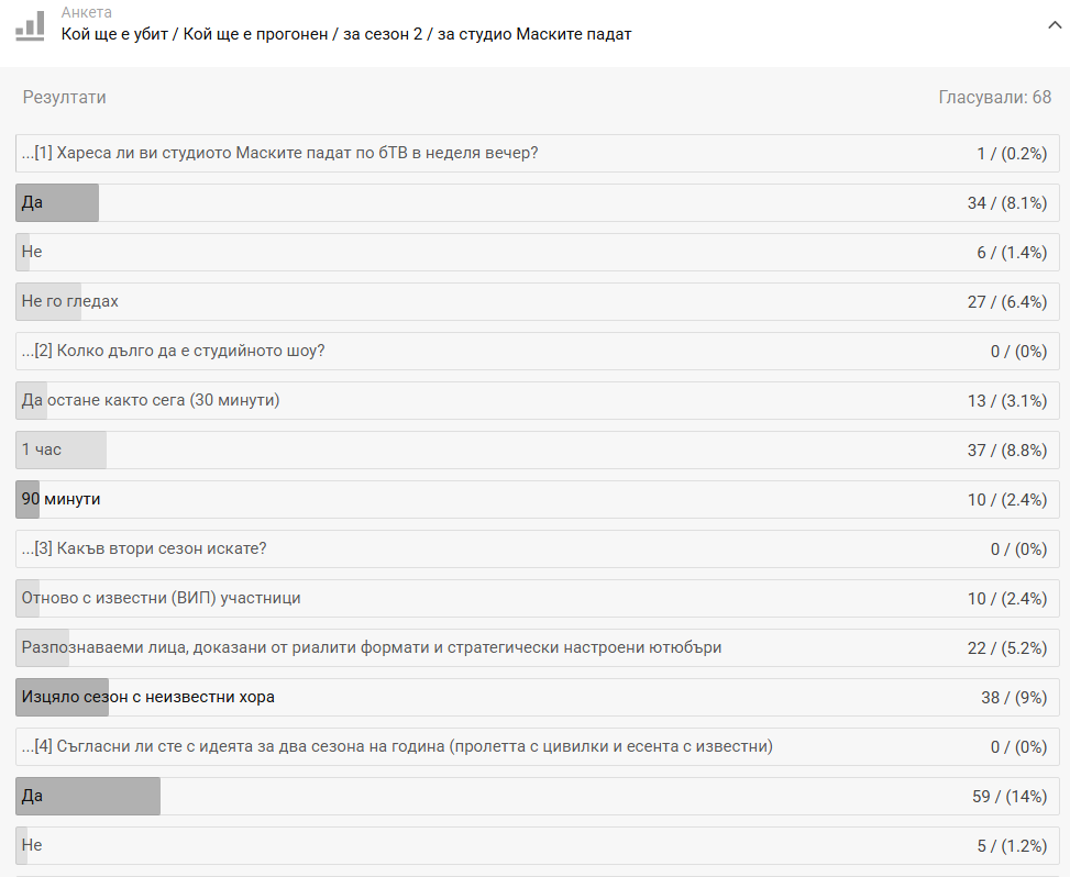Харесва ми сезонът, Владо и Онцова изпращам с безразличие, Гъмов негативно. Не мога още да измисля кой ще спечели.