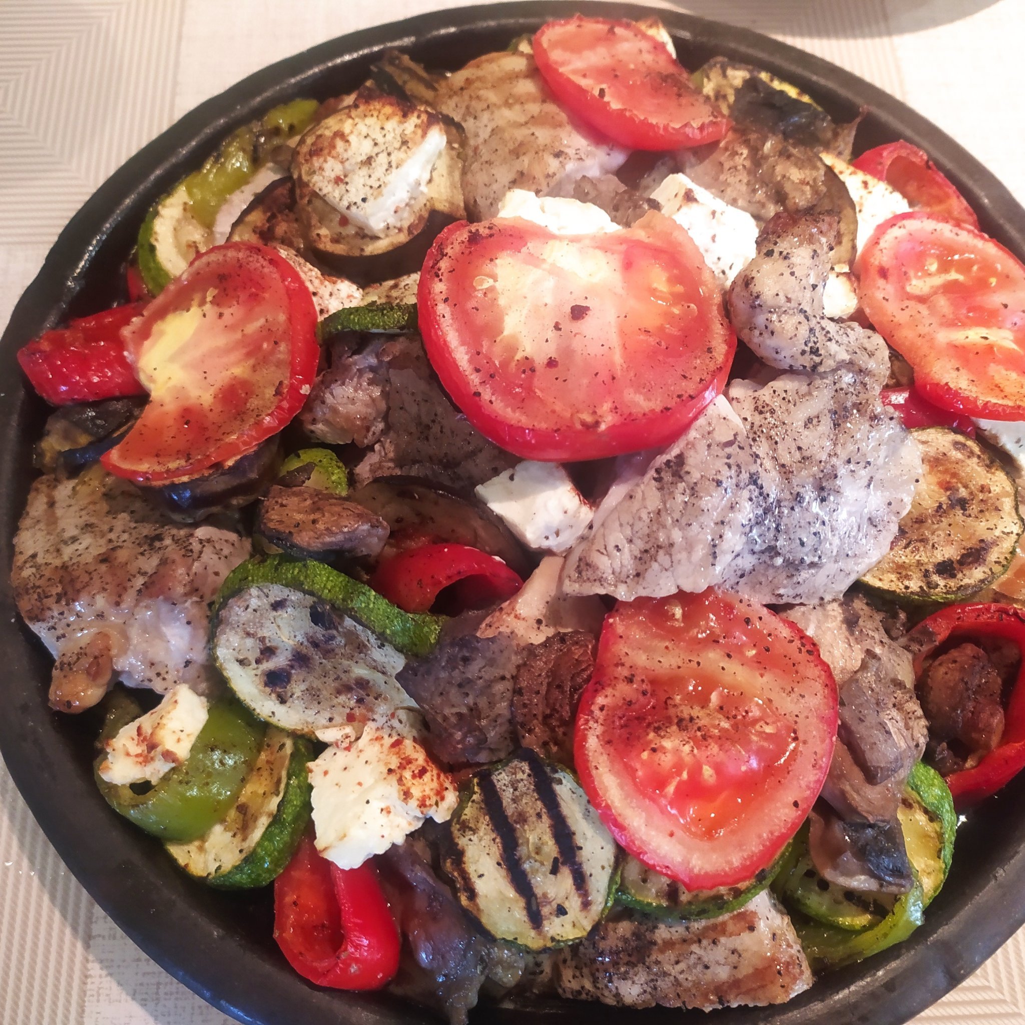 Последната тиквичка от градината (толкова е вкусна, колкото и първата). Вече съм признат майстор на тиквички по гръцки