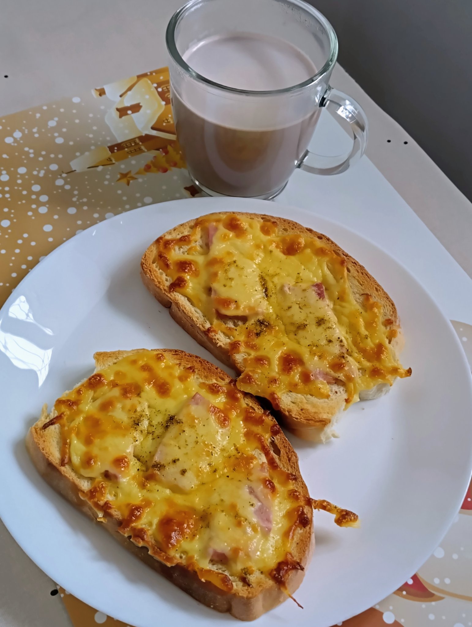 Днешната ни закуска от топли сандвичи с шунка и кашкавал