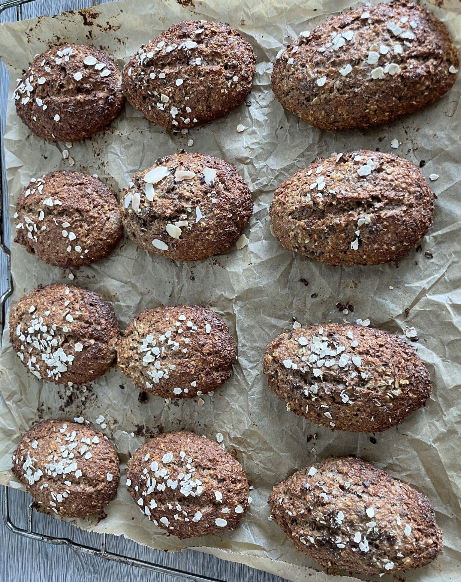 Днес за закуска здравословни хлебчета с овес и трици от спелта.