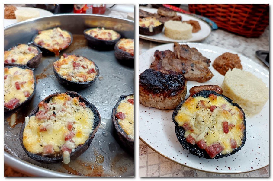 Портобело с шунка, топено сирене, кашкавал и порция с месцето