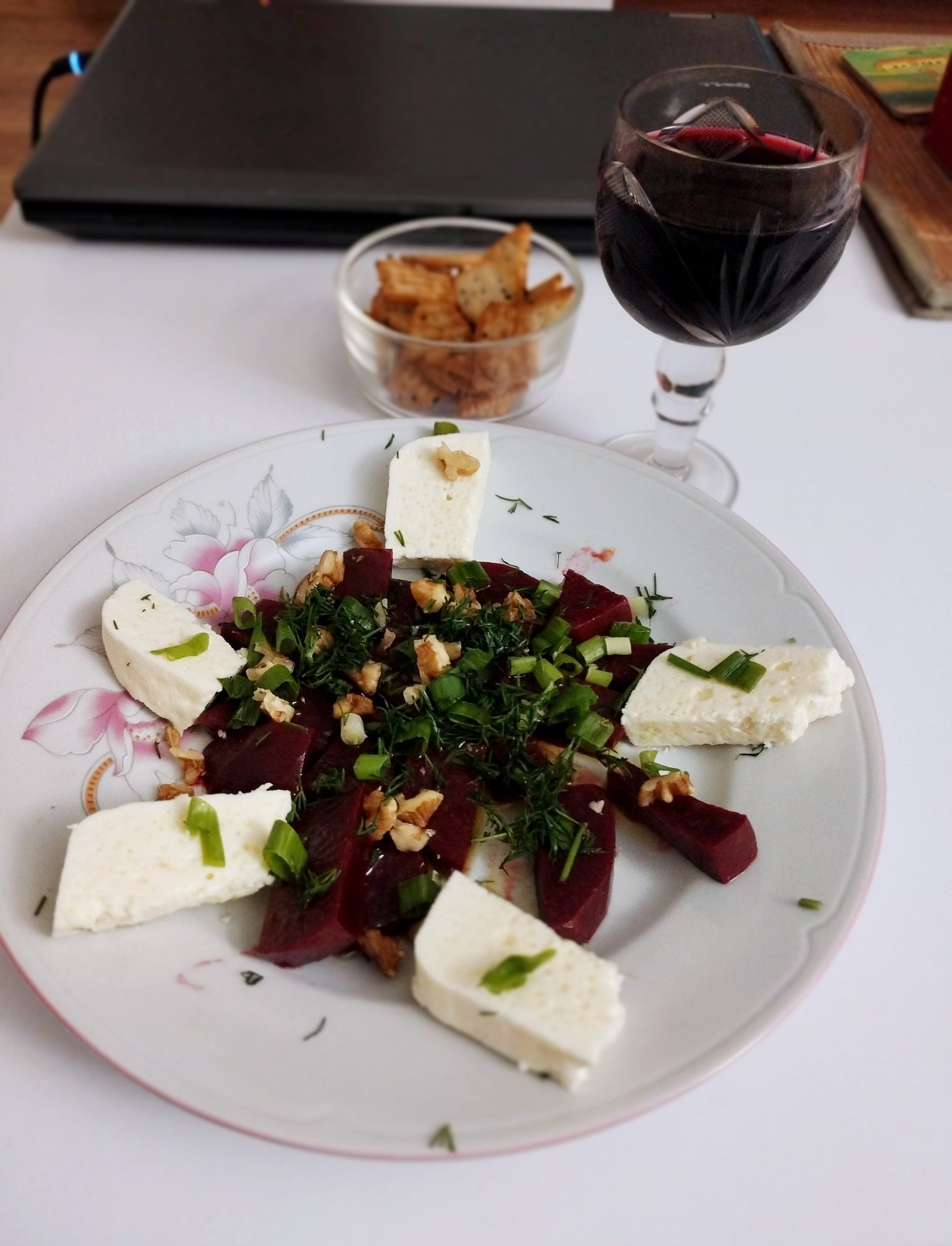 Да не е спам, вечерята ми - цвеклото на пеп-4о с домашно сиренце.