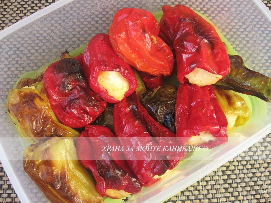 последните чушки от градината на мама, пълнени с яйце и сирене