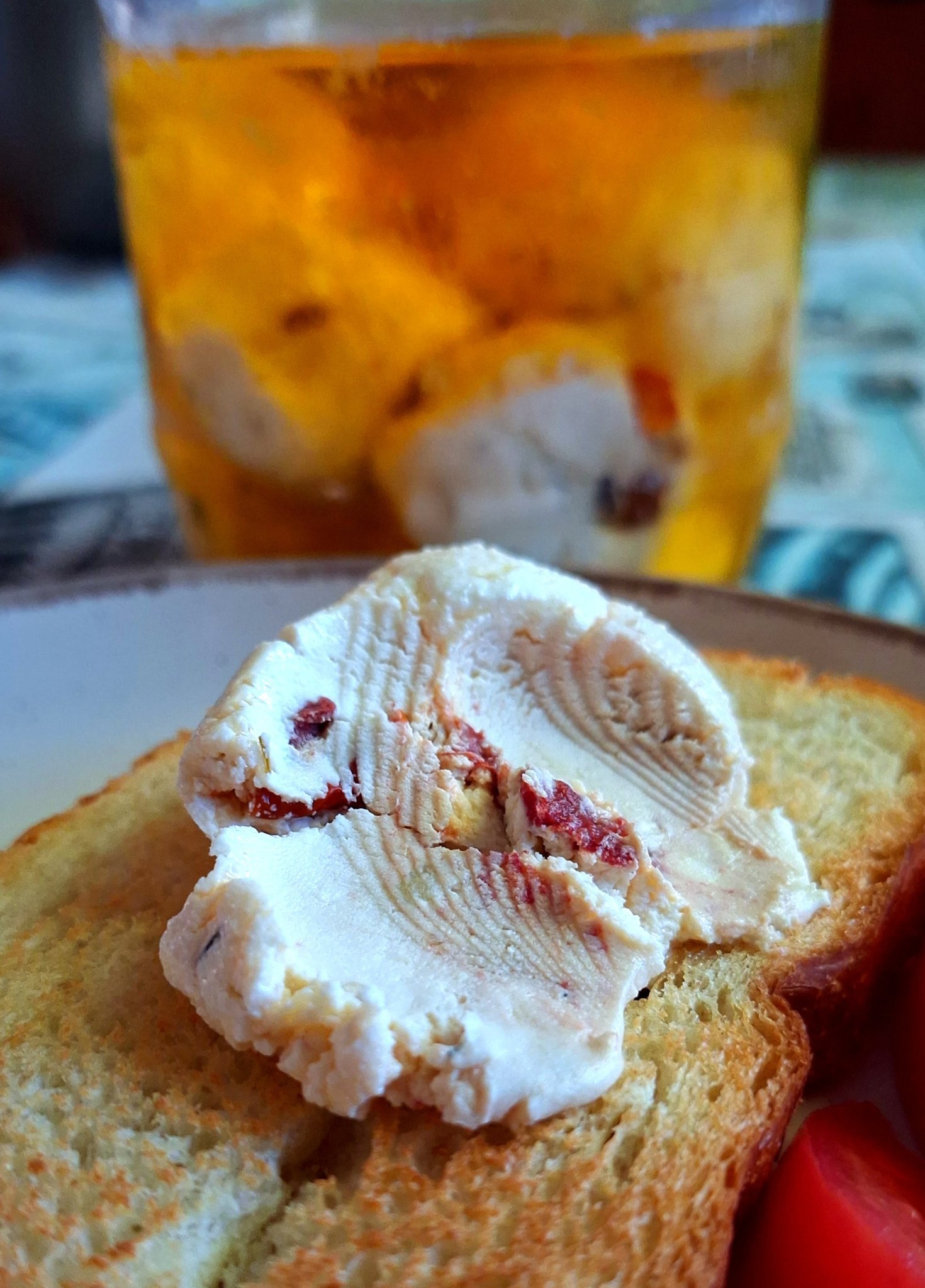 Домашно крема сирене мариновано със сушени домати,мащерка и подправки