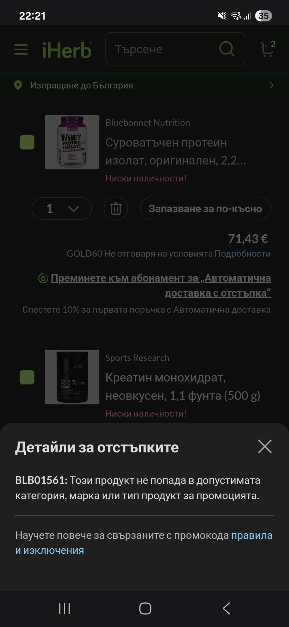Опитвам да поръчам тези 2 продукта, но изглежда единият е под реструкция с gold кодовете.