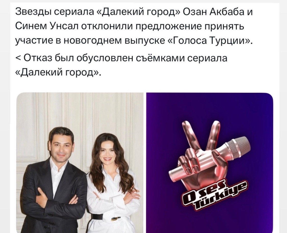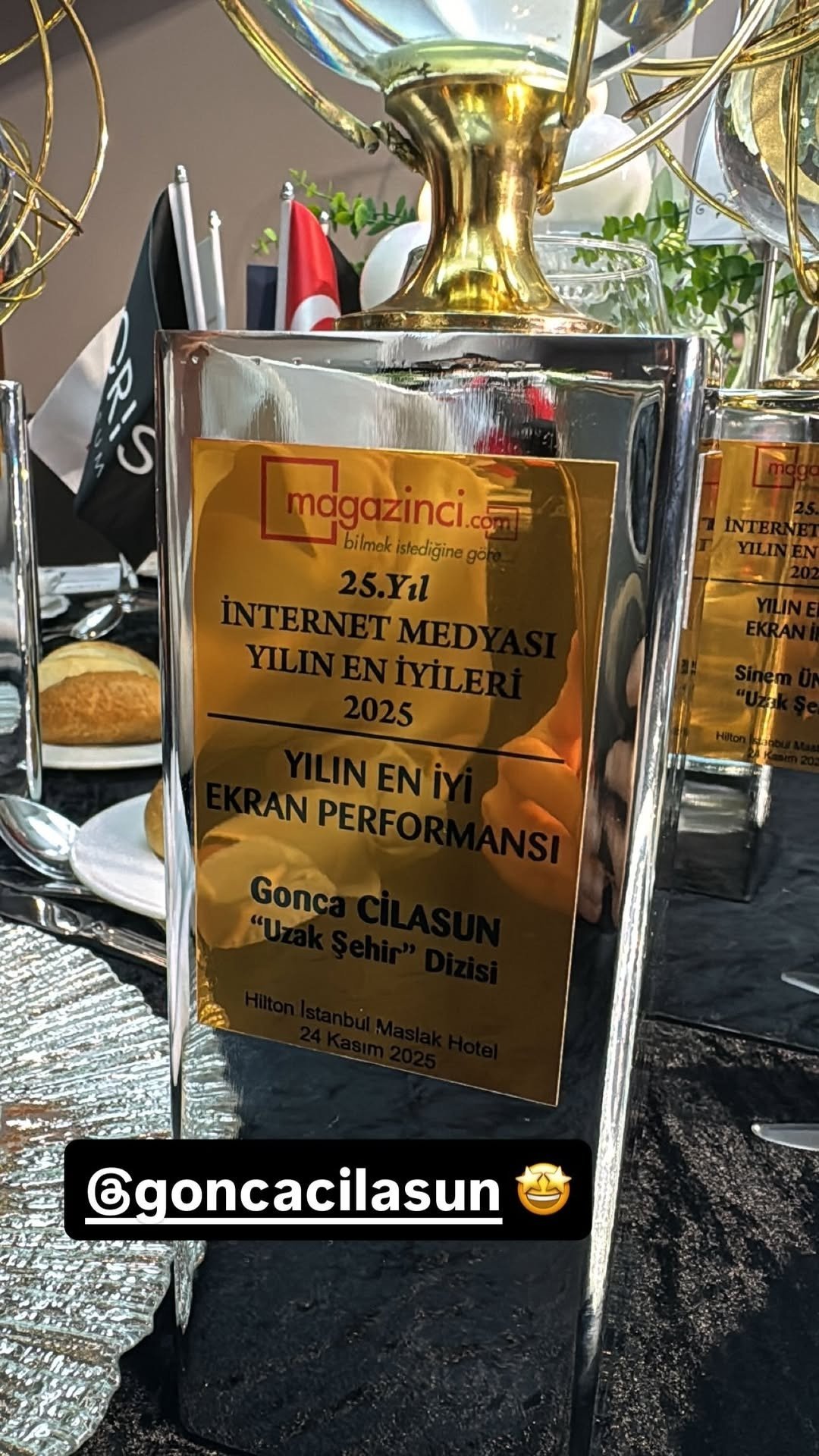 Синем Юнсал и Озан Акбаба, които бяха отличени с наградата „Най-добър екранен дует на годината“ на церемонията по награждаване на Magazinci.com „Най-добра онлайн медия в света“, не успяха да присъстват на събитието поради продължаващите снимки на „Далечен град“ в Мардин. Дуетът изрази благодарността си за наградата във видео съобщение. Поздравления 👏