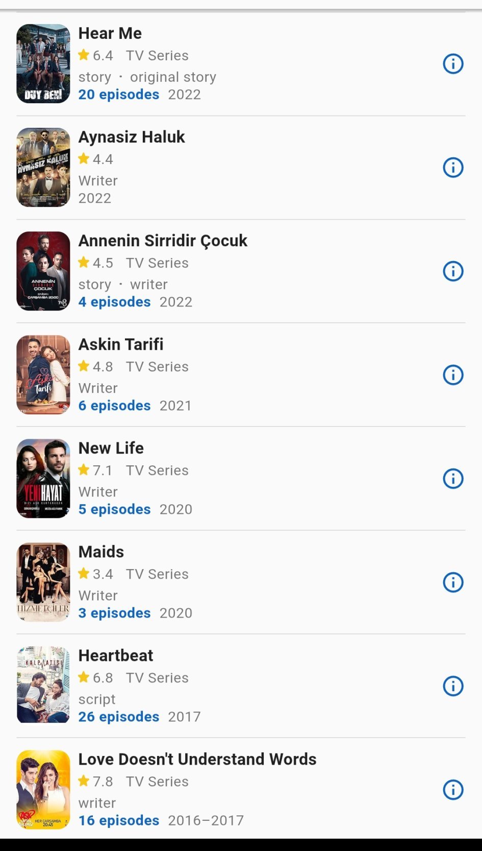Ето част от сериалите, по-които е работила новата сценаристка. Очевидно с Ханде се познават, работила е по 16епизода на "Любовта не разбира от думи"