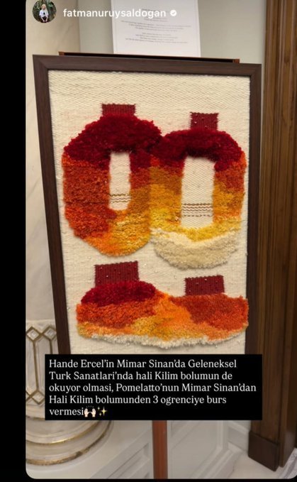 "#Pomellato, италианската марка бижута, за която Ханде е глобален посланик на марката, предоставя стипендии на 3 студенти от катедрата по традиционни турски килими и черги „Мимар Синан“, където учи Ханде Ерчел."