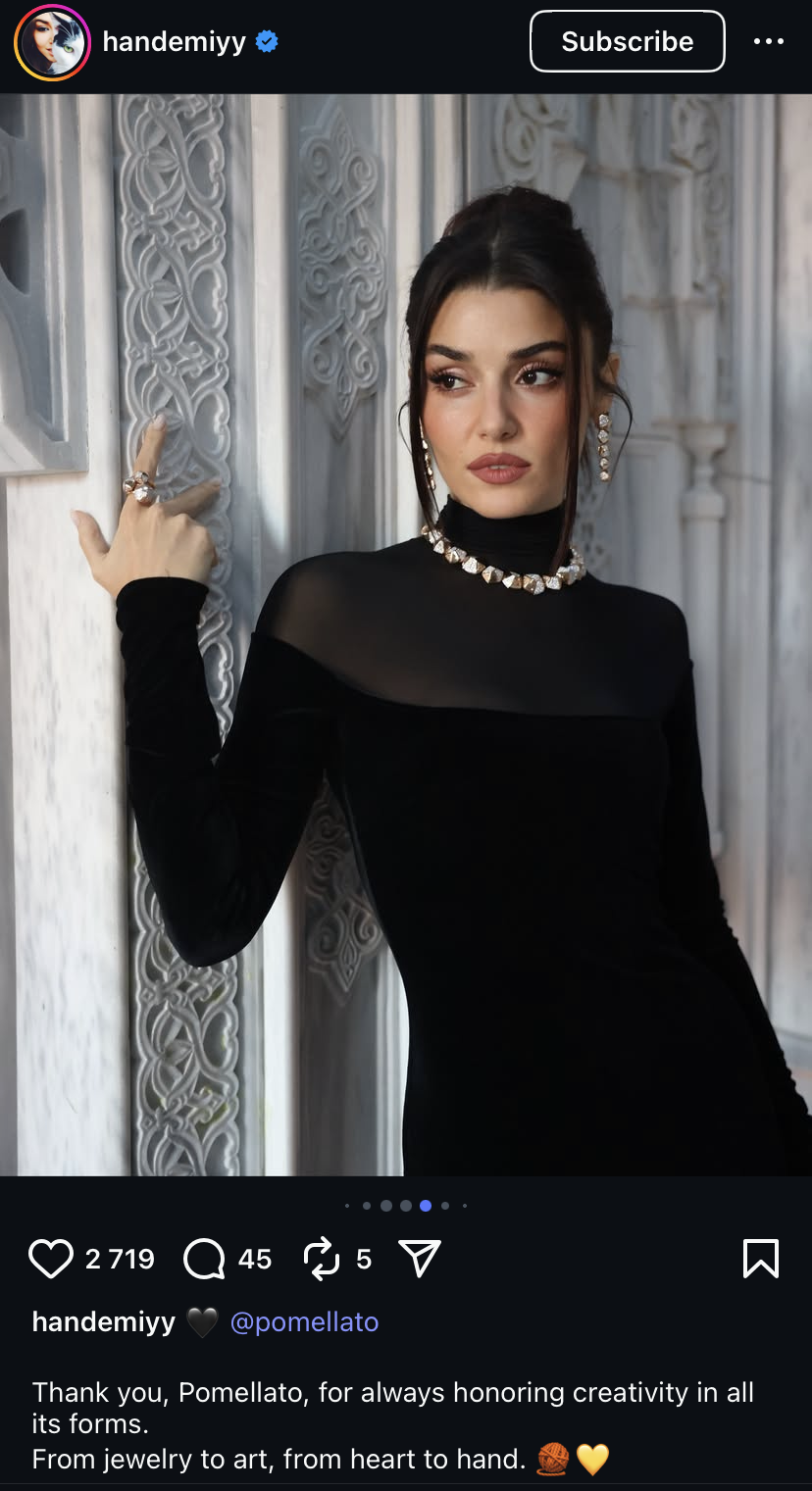 Международния отглас на колаборацията Ханде / килимарство / и Pomellato / бижутерия /