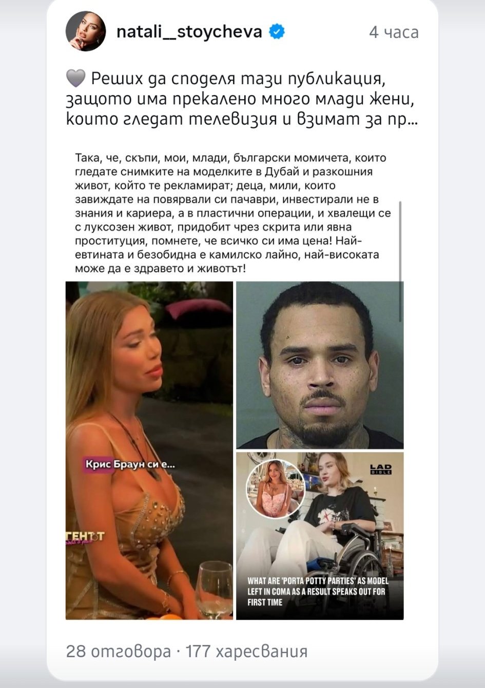 Аз не мисля, че Натали и Филипа са направили нещо лошо. Все пак това е предаване, мъжете и жените трябва да излизат на срещи, често с когото им се каже от екипа и да се борят за спечелване на половинки, а не да се лепнат за него и чрез "бизнес стратегия" да си карат до края.