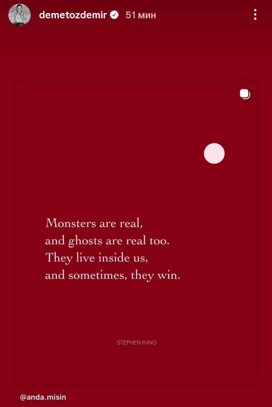 Споделена от Демет публикация: "Чудовищата са истински. И духовете също са истински. Те живеят вътре в нас и понякога - те печелят."