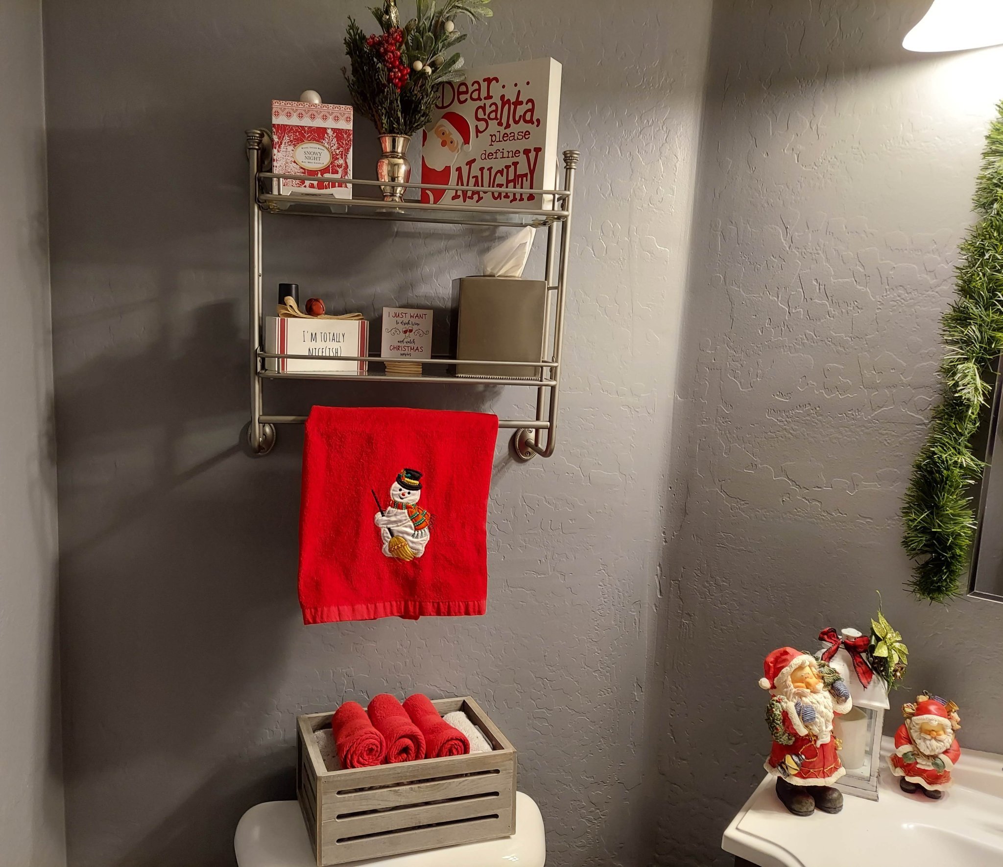 Да, слагам и малко коледна украса в банята. И коледни дозатор за сапун и чаша за четките за зъби, коледни кърпи.Simple Smile