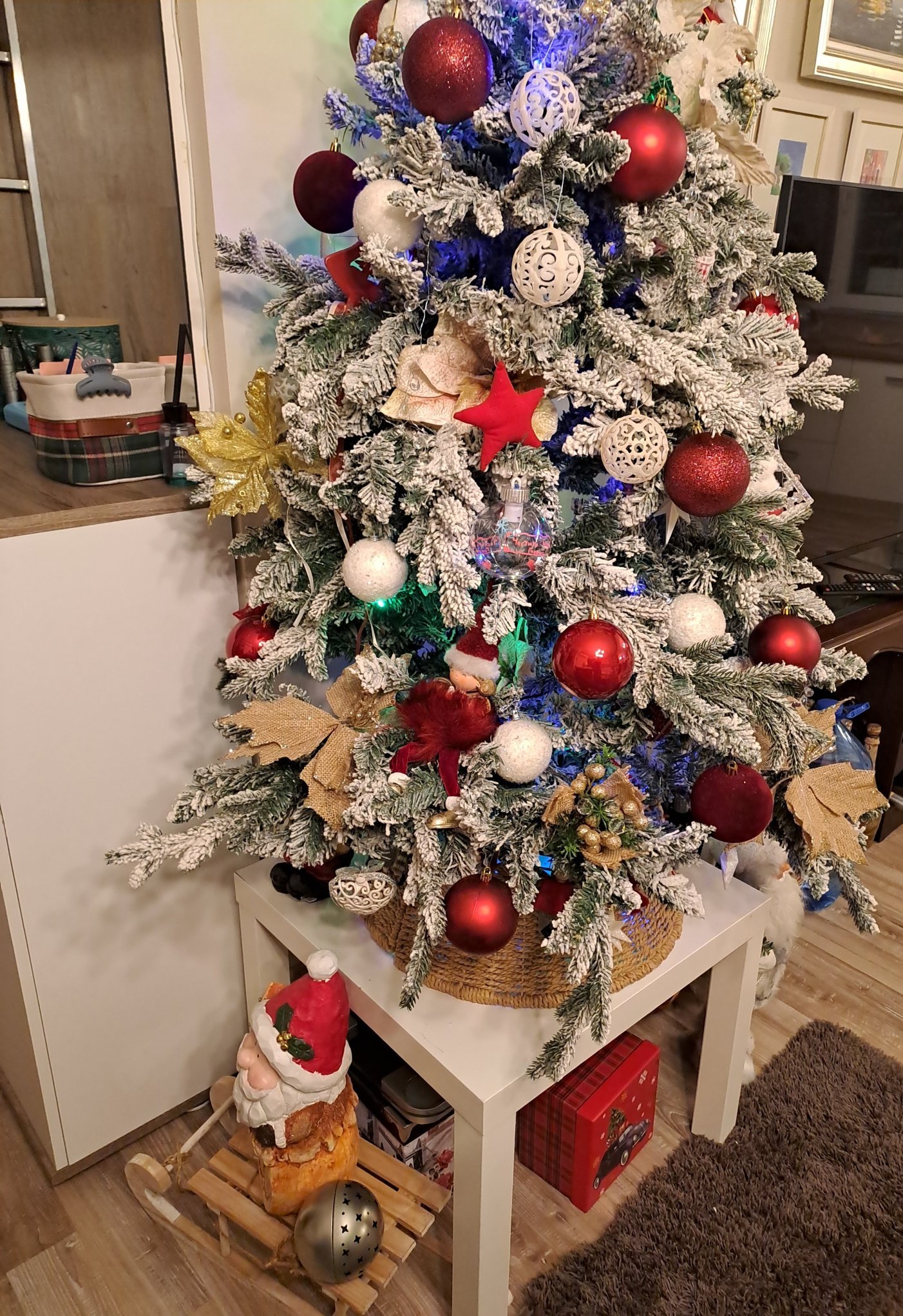 Елхата, украсена с моите две златни ръчички. Благодаря за аплодисментите. Стига, че се притесних.