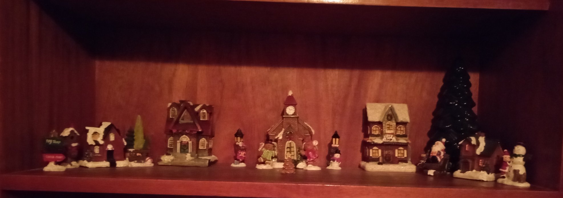 От преди малко-импровизирано селце на секцията на малкия(къщичките са от Немски център от едно време и една съфорумка, голямата елха от Пепко,малките фигурки също от там).Сега ще мисля как да му сложа някакво осветление...